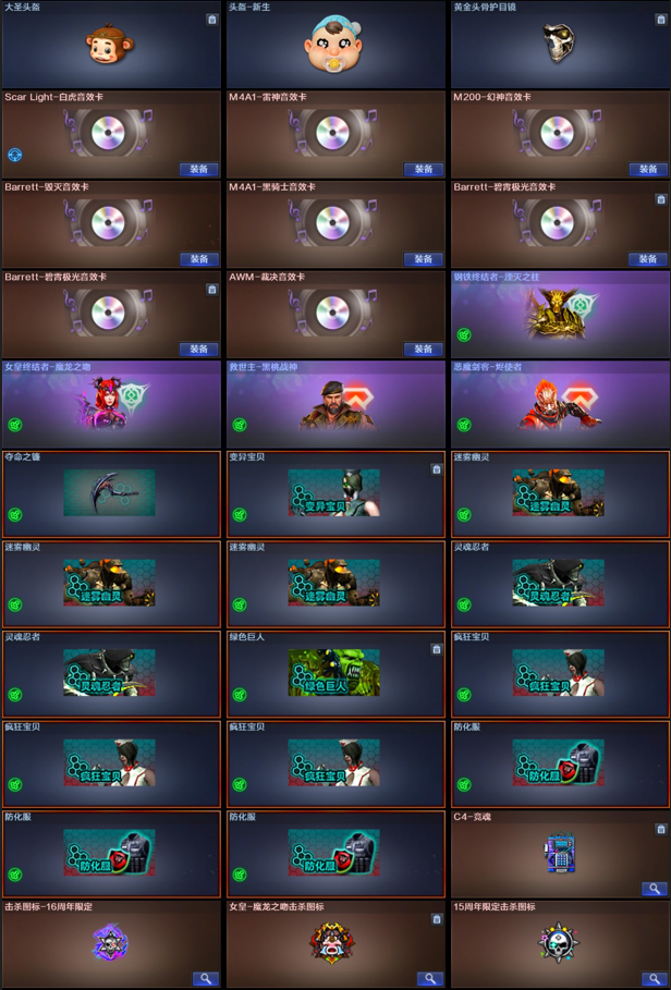 【热门音效卡】:M200-幻神音效卡/AWM-裁决音效卡/Scar Light-白虎音效卡/M4A1-雷神音效卡/Barrett-毁灭音效卡/M4A1-黑骑士音效卡
