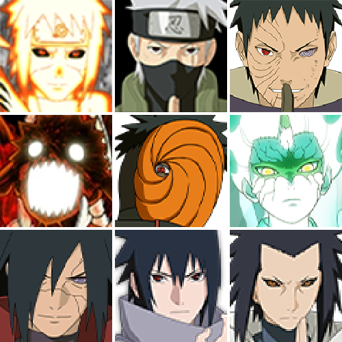 宇智波斑 「秽土转生·解」 千手柱间 「木叶创立」 宇智波佐助「永恒万花筒」 神秘面具男 「红夜之刃」春野樱 「忍界大战」大筒木金式 「博人传」漩涡鸣人「九喇嘛连结」三代目风影「秽土转生」大蛇丸「百战不灭」大野木「忍界大战」迈特凯「死门」宇智波斑「木叶创立」宇智波带土「忍界大战」千手柱间「秽土转生」罗砂「四代目风影」宇智波鼬「秽土转生」自来也「舞之豪杰」佩恩·天道「超」药师兜「仙人模式」宇智波斑「秽土转生」艾「三代目雷影」宇智波斑「白面具」半藏「秽土转生」千手扉间「秽土转生」纲手「百豪」无「二代目土影」波风水门「秽土转生」金角·银角「秽土转生」猿飞日斩「秽土转生」长门「秽土转生」宇智波斑 千手柱间 艾「四代目雷影」千手扉间 神秘面具男 鬼灯幻月「二代目水影」佩恩「天道」大蛇丸 波风水门 纲手 自来也 宇智波鼬「须佐能乎」大野木「三代目土影」自来也「仙人模式」猿飞日斩