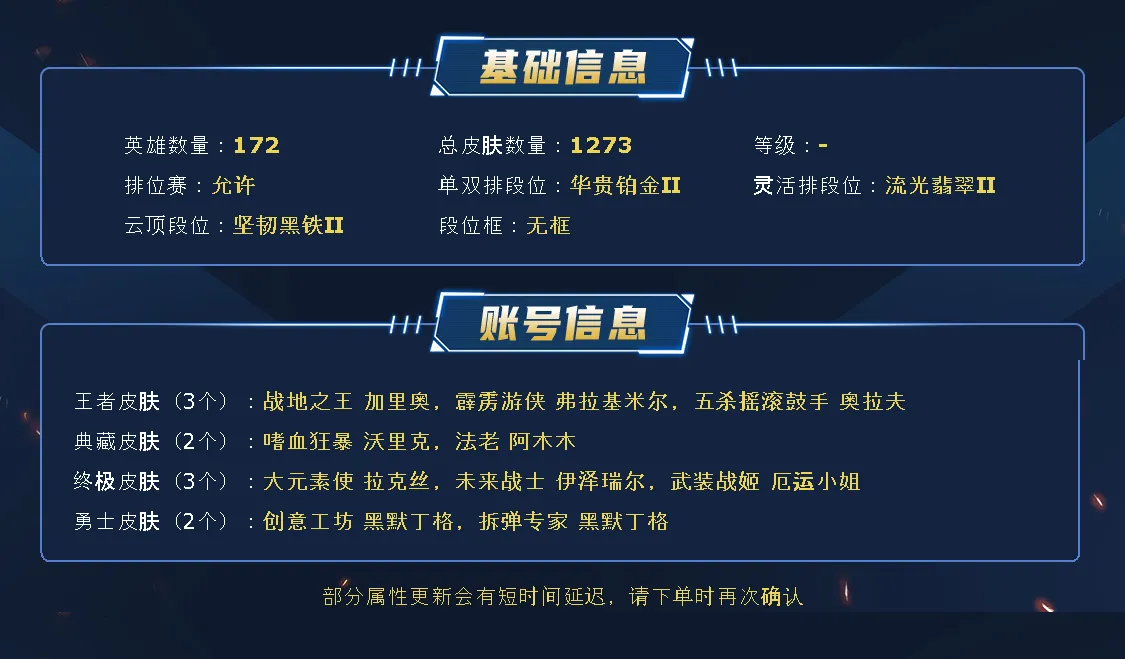~~喜欢记得收藏~~可排位~~1300皮全英雄~~租之前尽量查一下游戏ID,确保段位是您需要的,避免浪费您的时间~~请勿挂机逃跑故意送人头,谢谢合作,谢谢~~