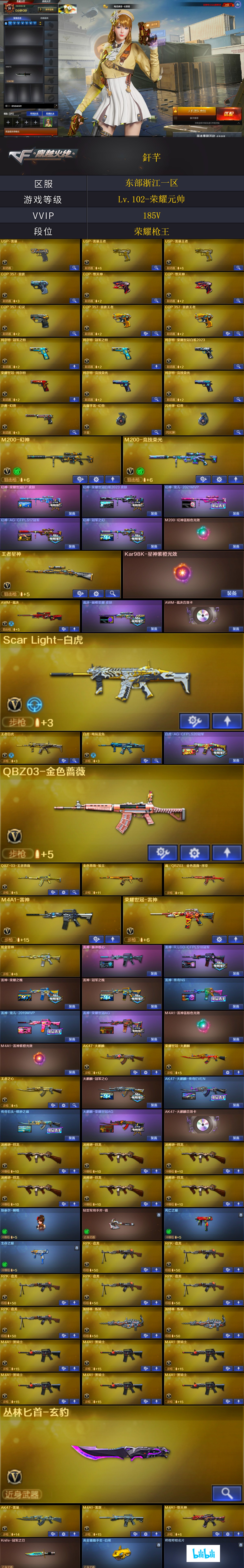 【商品标题】:东部浙江一区-185V-可二次实名-【Lv.102-荣耀元帅】-【段位:荣耀枪王】