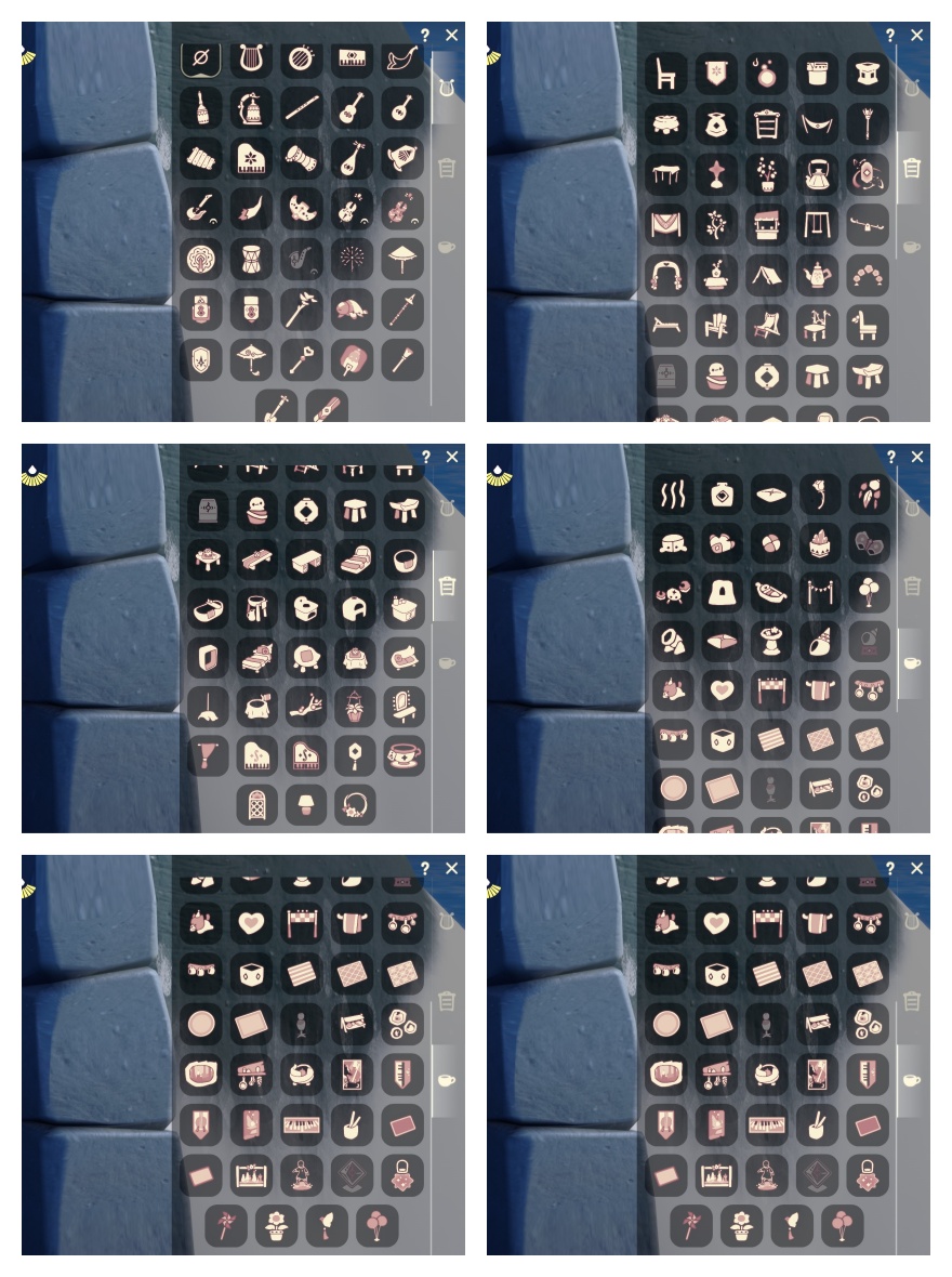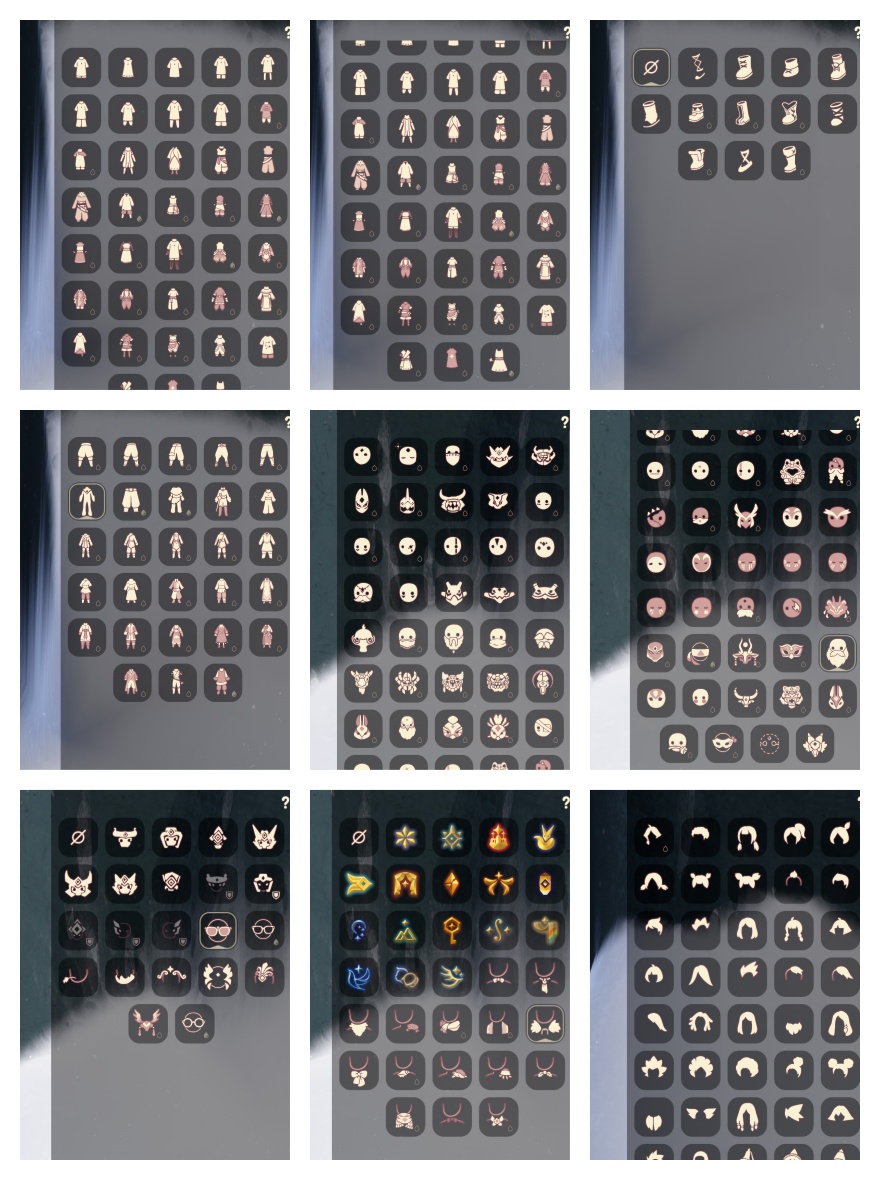 礼包:小黄裙 祥云裤 水母 向日葵套 白领巾 巫 师 绒线帽 橘子 鱼 奥利奥发箍 桂冠 雪花 贝壳 兔子 草 耳机 枯角 创始人 围巾 蝙蝠套 锦鲤套 线框斗 蝙蝠套 蛛丝斗 瑞雪斗 白金绒 绊爱套 祥云伞 魔法棒 秋千 跷跷板 茶桌 茶壶 船 奥利奥