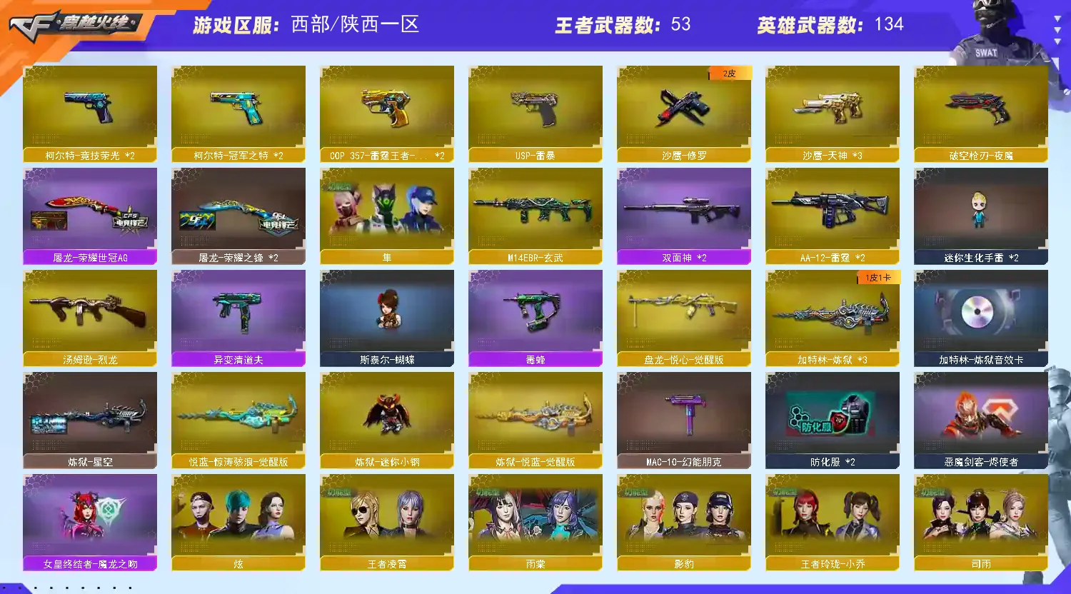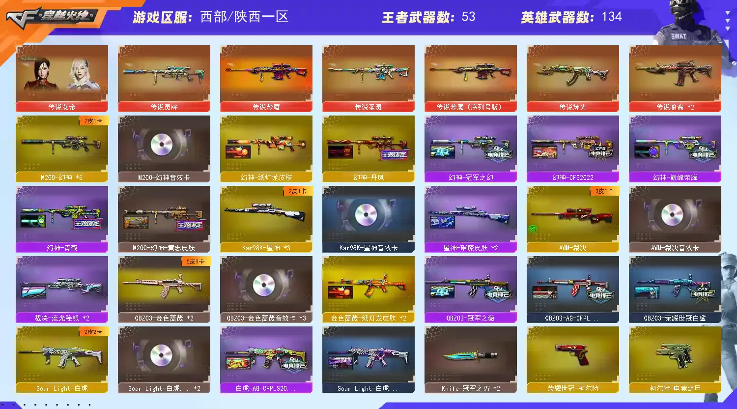 【陕西一区】【幻神三件套】【幻神7皮】【星神三件套】【裁决三件套】【白虎三件套】【金色蔷薇三件套】【毒蜂】【异变清道夫】【斯泰尔-蝴蝶】【死亡之眼】【炼狱-迷你小钢】【幻灵套装X1套】【竞技荣光套装X4套】【夜魔套装X3套】【传说女帝】【传说灵眸】【传说圣灵】【传说梦魇】【传说暗裔】【传说暗裔】【传说辉光】【M200-幻神】【幻神-冠军之幻】【幻神-巅峰荣耀】【幻神-CFS2022】【幻神-青鹤】【幻神-丹凤】【幻神-纸灯龙皮肤】【M200-幻神-黄忠皮肤】【M200-幻神音效卡】【M200-竞技荣光】【Kar98K-星神】【星神-璀璨皮肤】【Kar98K-星神音效卡】【王者星神-觉醒版】【王者星神】【AWM-裁决】【AWM-裁决音效卡】【裁决-流光秘银】【Scar Light-白虎】【白虎-AG-CFPLS20冠军】【Scar Light-白虎-暗星】【Scar Light-白虎音效卡】【白虎-电玩蓝兔】【王者白虎-觉醒版】【QBZ03-金色蔷薇】【QBZ03-冠军之薇】【QBZ03-荣耀世冠白鲨】【QBZ03-AG-CFPLS19冠军】【金色蔷薇-纸灯龙皮肤】【QBZ03-金色蔷薇音效卡】【QBZ03-金色蔷薇音效卡】【QBZ-03-王者蔷薇-觉醒版】【王者芳薇-觉醒版】【王者芳薇】【M4A1-雷霆王者-觉醒版】【M4A1-青龙】【HK417-朱雀】【M14EBR-玄武】【M4A1-夜魔】【USP-雷暴】【柯尔特-冠军之特】【荣耀世冠-柯尔特】【柯尔特-竞技荣光】【COP 357-雷霆王者-觉醒版】【破空枪刃-夜魔】【Knife-冠军之刃】【黄金猫猫手套-白鲨】【炼狱-迷你小钢】【加特林-炼狱】【盘龙-悦心-觉醒版】【炼狱-悦蓝-觉醒版】【魂·炼狱-玩具枪】【汤姆逊-烈龙】【烈龙-云海游龙】【斯泰尔-蝴蝶】【毒蜂】【异变清道夫】【死亡之眼】【传说女帝】【电竞教官-云悠悠】【关小雨】【狐影】【荒漠琉璃】【司雨】【王者葵-惊若翩鸿】【王者玲珑-小乔】【王者凌霄】【王者潘多拉】【王者沙漠玫瑰】【王者樱-热浪之夏】【修道士】【鹰】【影豹】【雨棠】【月兔特工】【云海玲珑】【炫】【隼】【魅影】【M4A1-雷神】【雷神-荣耀之魄】【雷神-宠儿-2019MVP】【M4A1-雷神-巅峰荣耀皮肤】【雷神-R.LGD-CFPLS18冠军】【雷神-冠军之魄】【M4A1-战神赵云】【雷神-荣耀世冠AG】【雷神-烈虎皮肤】【雷神-虎将】【M4A1-雷神音效卡】【AK47-火麒麟】【火麒麟-白虎】【火麒麟-冠军之心】【火麒麟-华夏之心】【火麒麟-巅峰荣耀】【火麒麟-荣耀世冠AG】【火麒麟-战神关羽】【火麒麟-雷神】【AK47-火麒麟音效卡】【M4A1-黑骑士】【黑骑士-冠军之势】【黑骑士-少林】【黑骑士-AG-S4冠军典藏】【黑骑士-CFS2021】【黑骑士-战神马超】【M4A1-黑骑士音效卡】【M4A1-黑龙】【黑龙-冠军之武】【黑龙-墨子皮肤】【黑龙-能量核心】【M4A1-黑龙音效卡】【Barrett-毁灭】【毁灭-荣耀之怒】【毁灭-冠军之怒】【毁灭-BEAN-2020MVP】【毁灭-CFS2020】【毁灭耀金皮肤】【毁灭-战神张飞】【毁灭-黑大圣皮肤】【毁灭-魔灵皮肤】【Barrett-毁灭音效卡】
