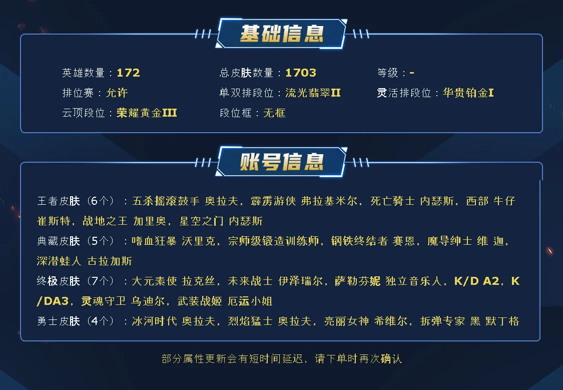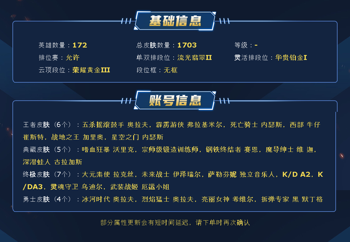 ~~喜欢记得收藏~~可排位~~1700皮全英雄~~租之前尽量查一下游戏ID,确保段位是您需要的,避免浪费您的时间~~请勿挂机逃跑故意送人头,谢谢合作,谢谢~~