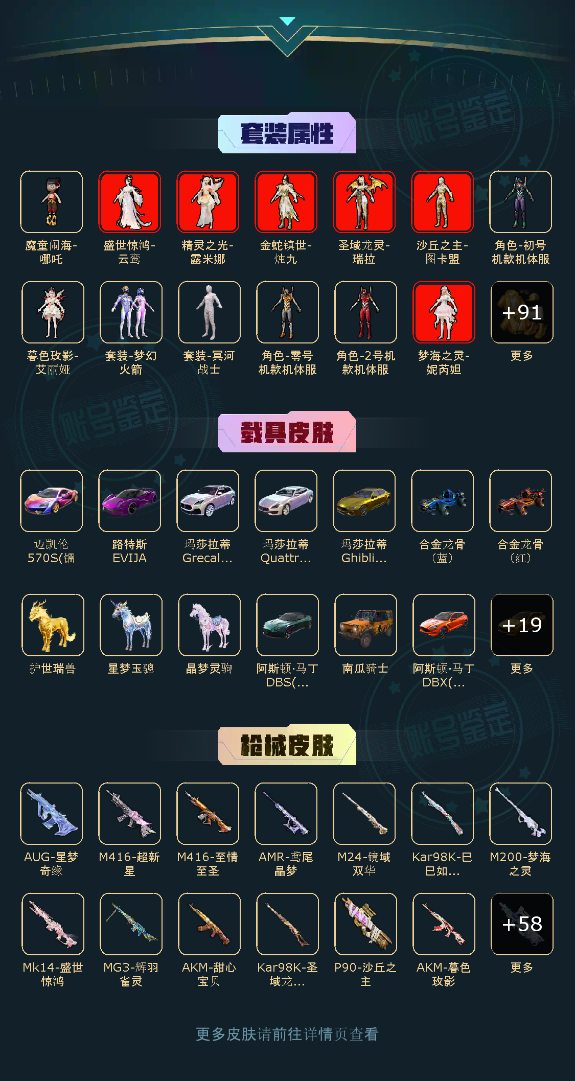101粉,33载具,70特效枪,462套装,25王牌印记