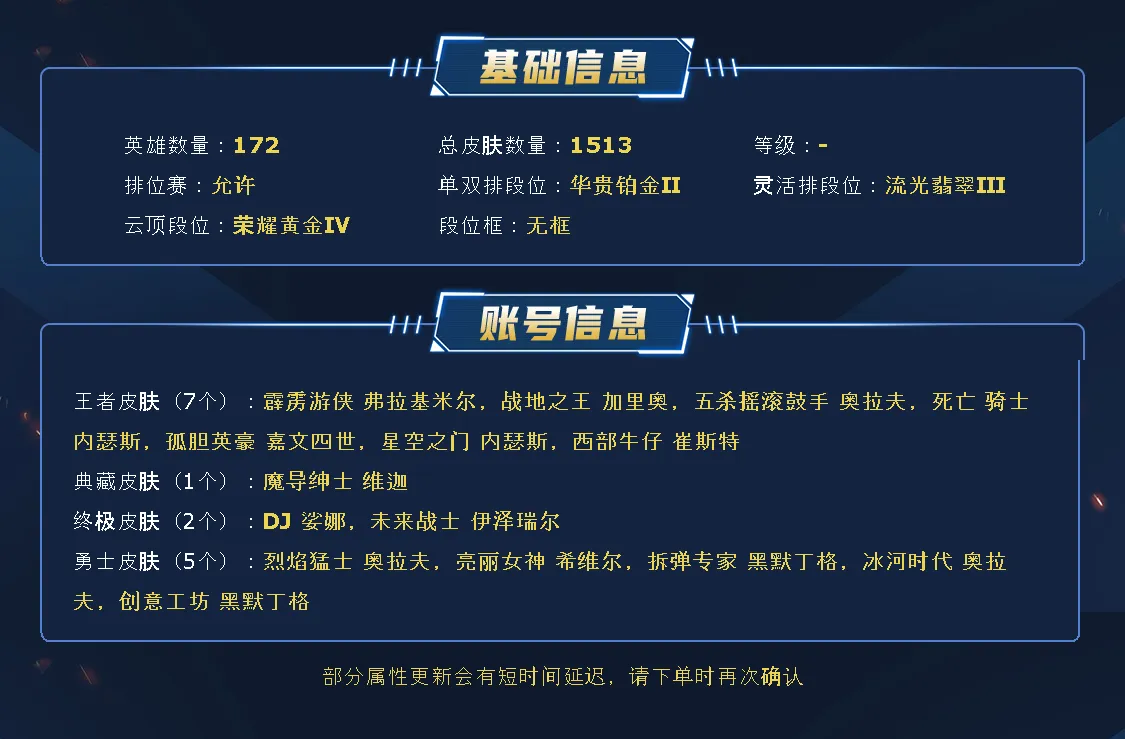 ~~喜欢记得收藏~~可排位~~1600皮全英雄~~租之前尽量查一下游戏ID,确保段位是您需要的,避免浪费您的时间~~请勿挂机逃跑故意送人头,谢谢合作,谢谢~~