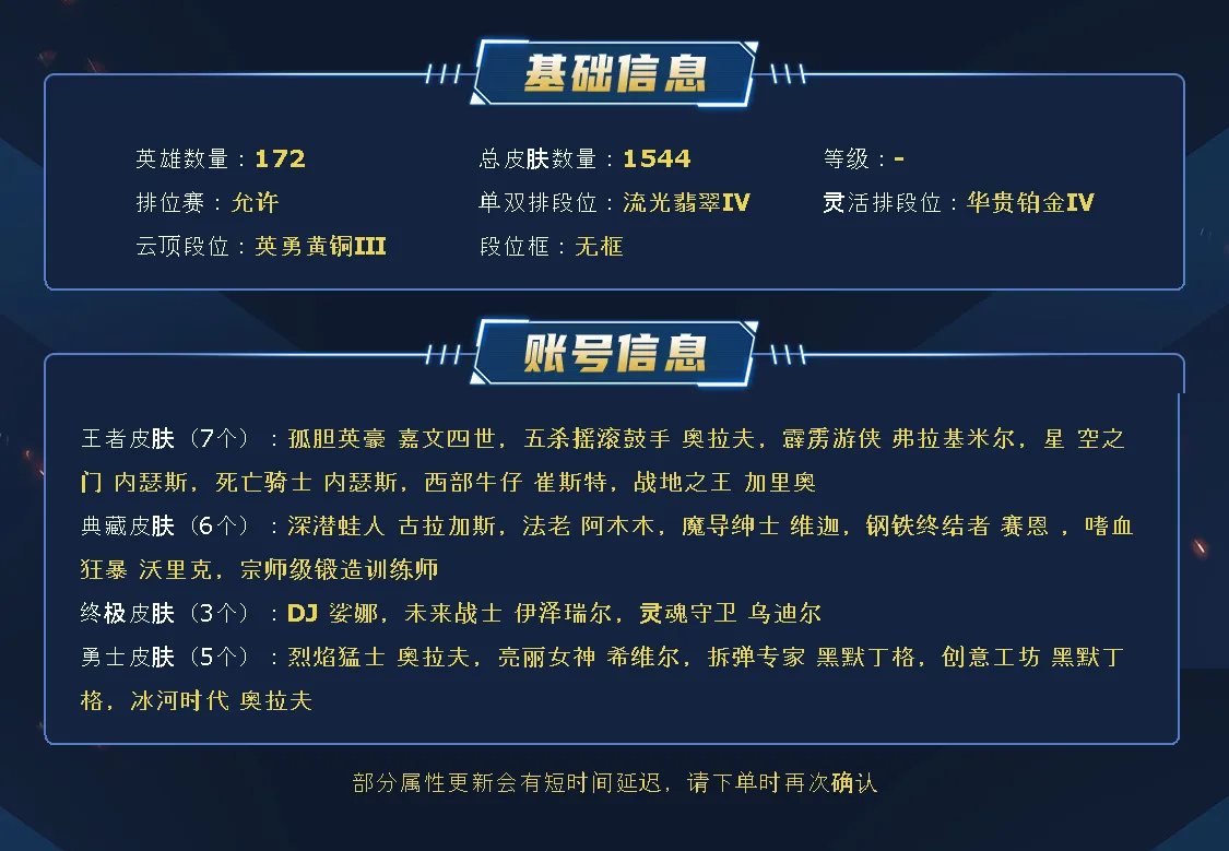 ~~喜欢记得收藏~~可排位~~1600皮全英雄~~租之前尽量查一下游戏ID,确保段位是您需要的,避免浪费您的时间~~请勿挂机逃跑故意送人头,谢谢合作,谢谢~~