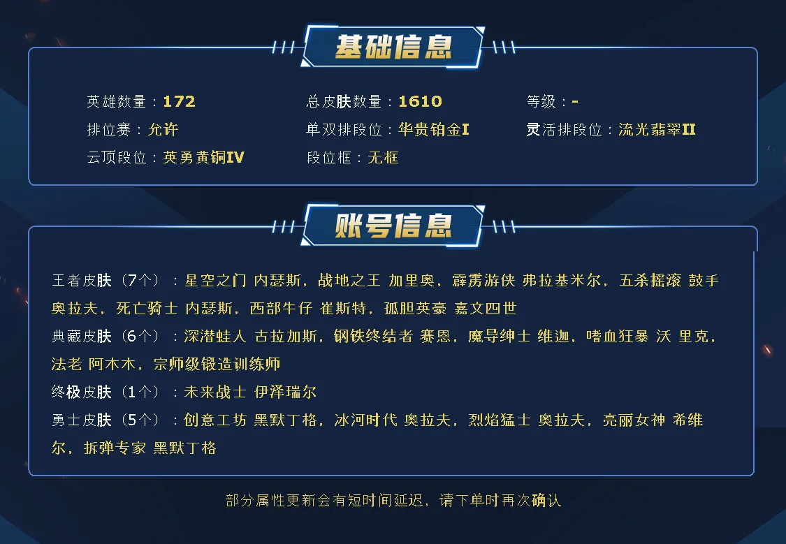 ~~喜欢记得收藏~~可排位~~1700皮全英雄~~租之前尽量查一下游戏ID,确保段位是您需要的,避免浪费您的时间~~请勿挂机逃跑故意送人头,谢谢合作,谢谢~~