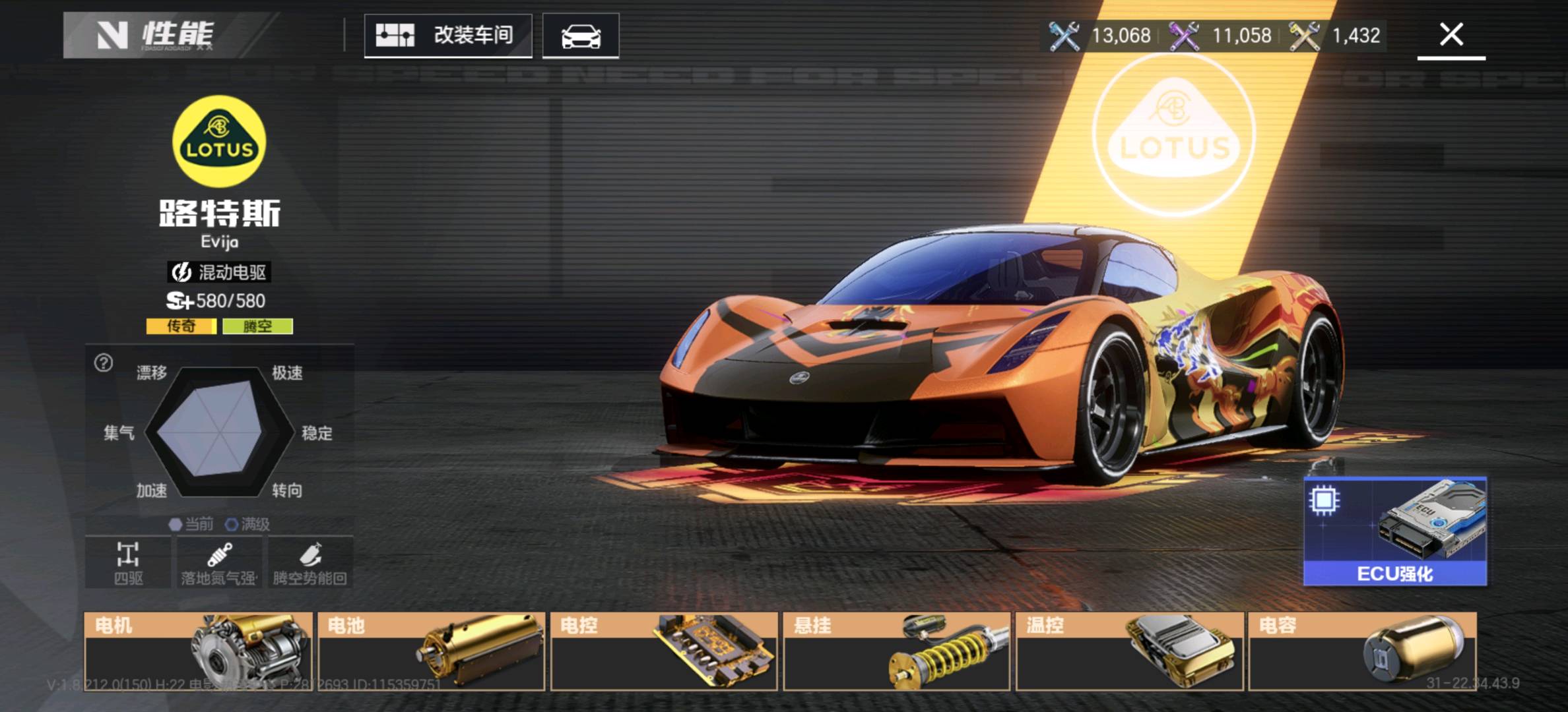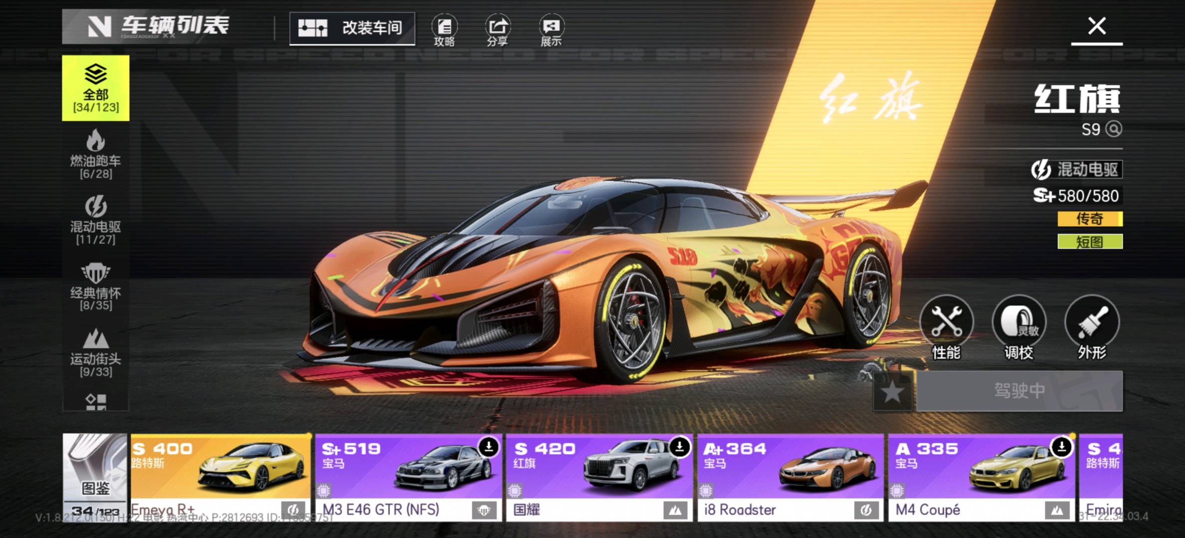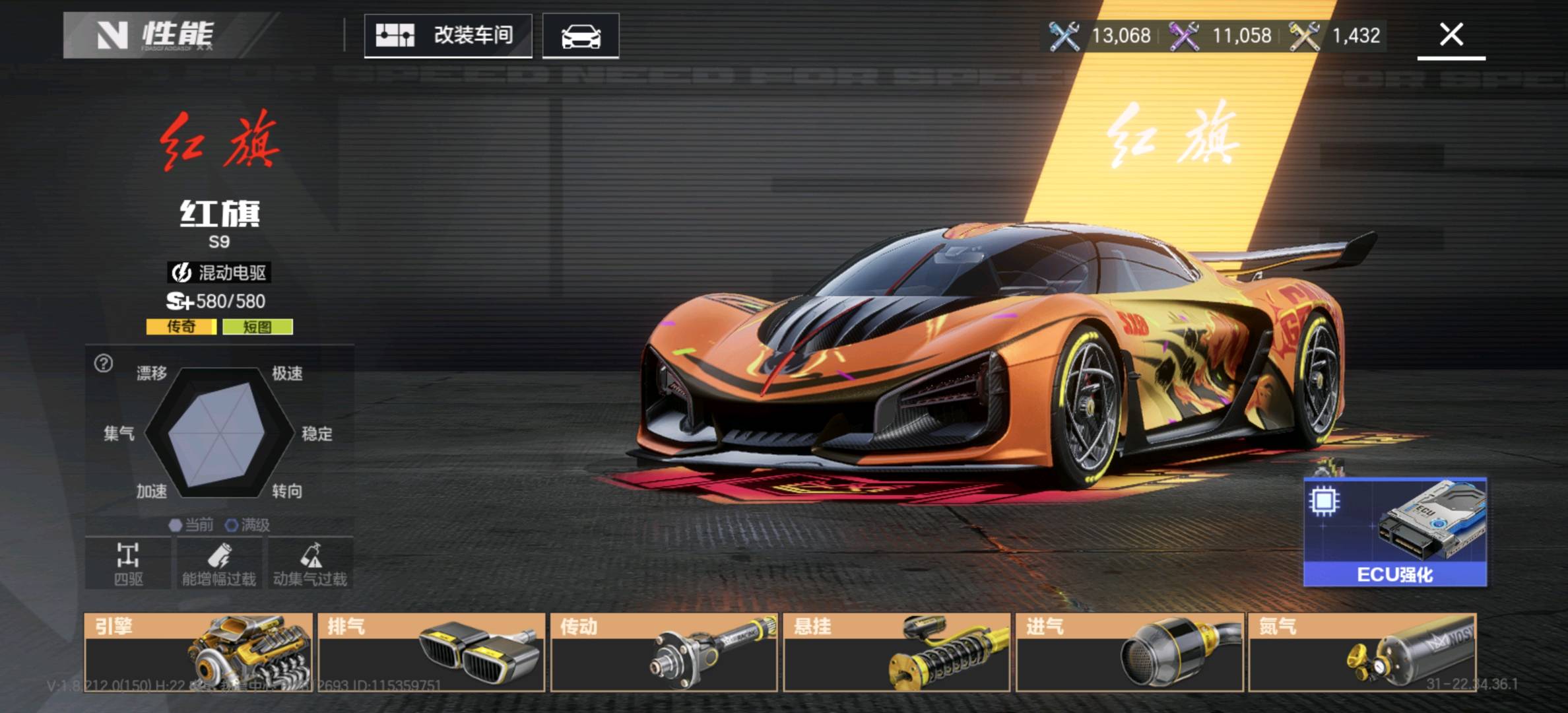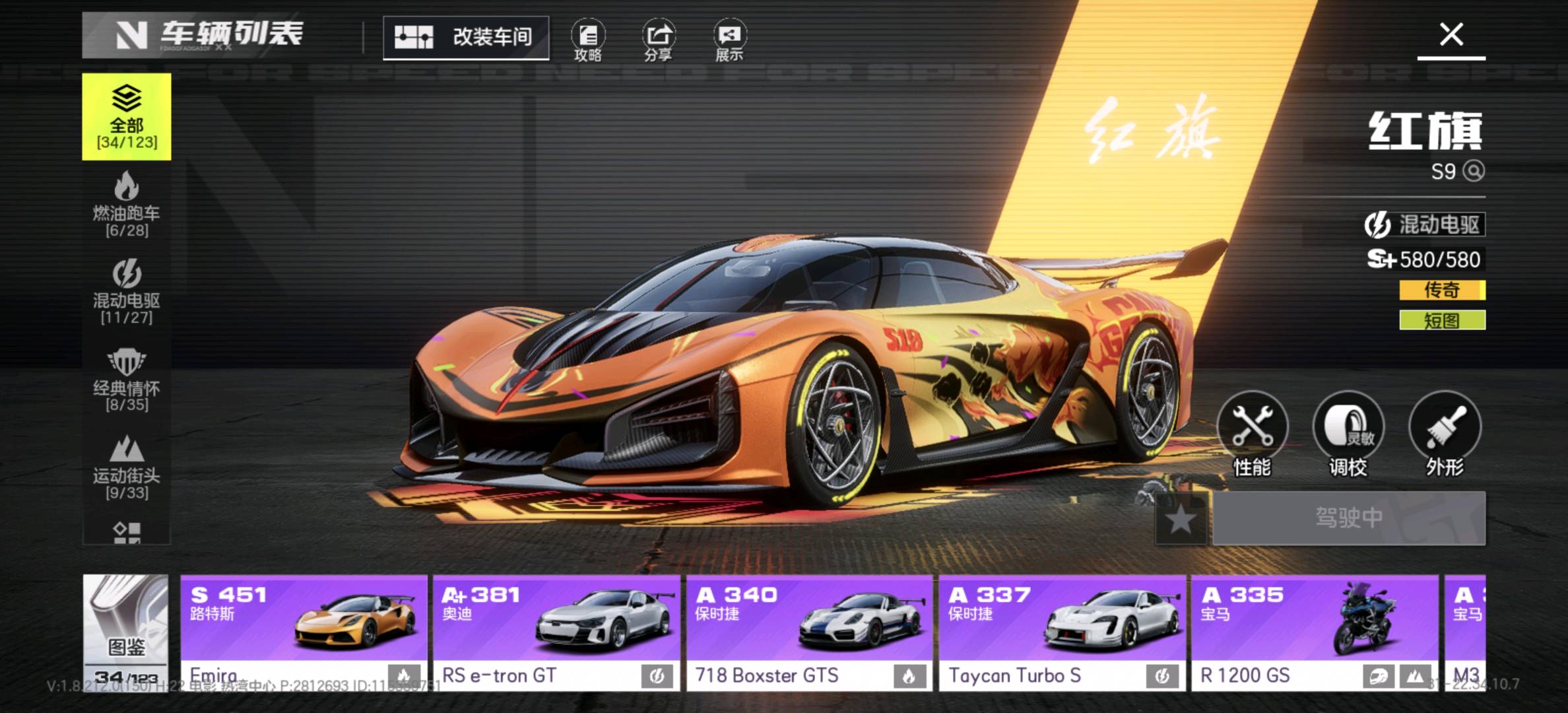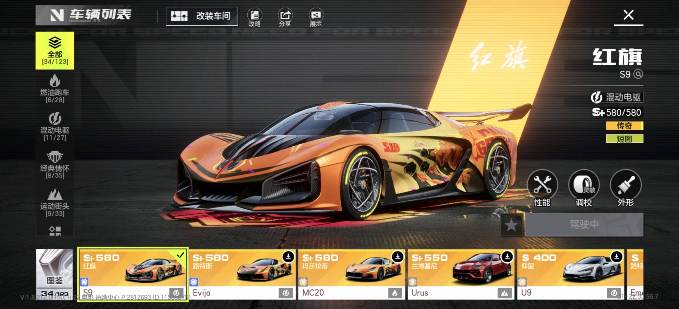 - 核心车辆:红旗S9(短图神车)、路特斯Evija(腾空神车)、玛莎拉蒂MC20(动力神车)等多辆S+级传奇车已解锁,满改状态,性能拉满。