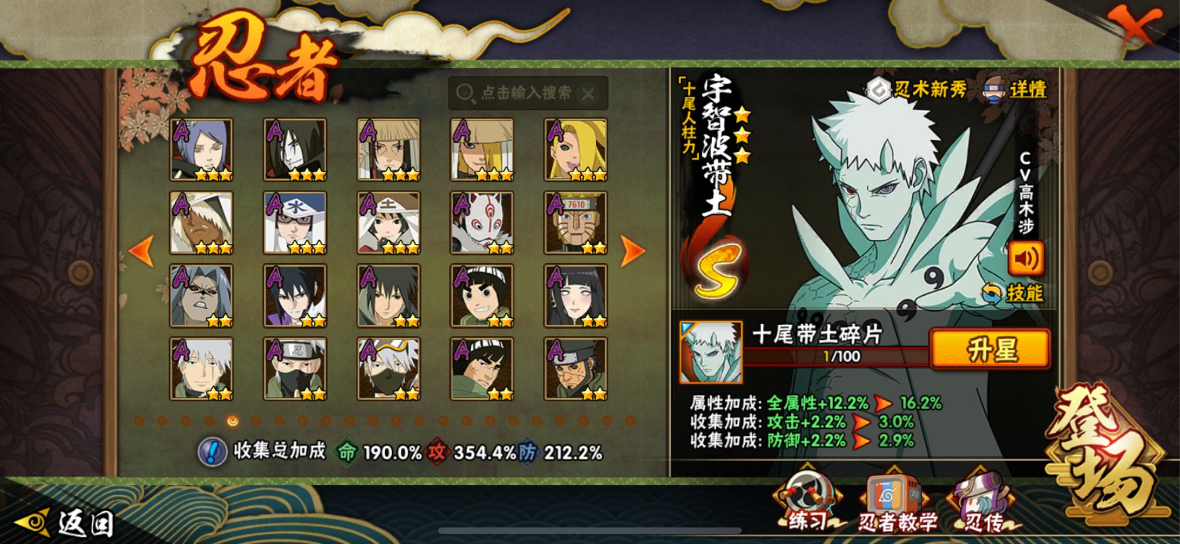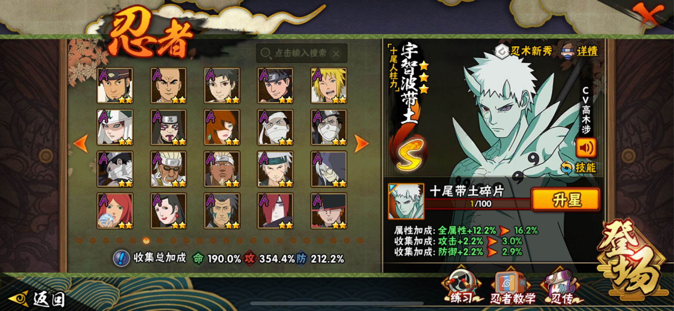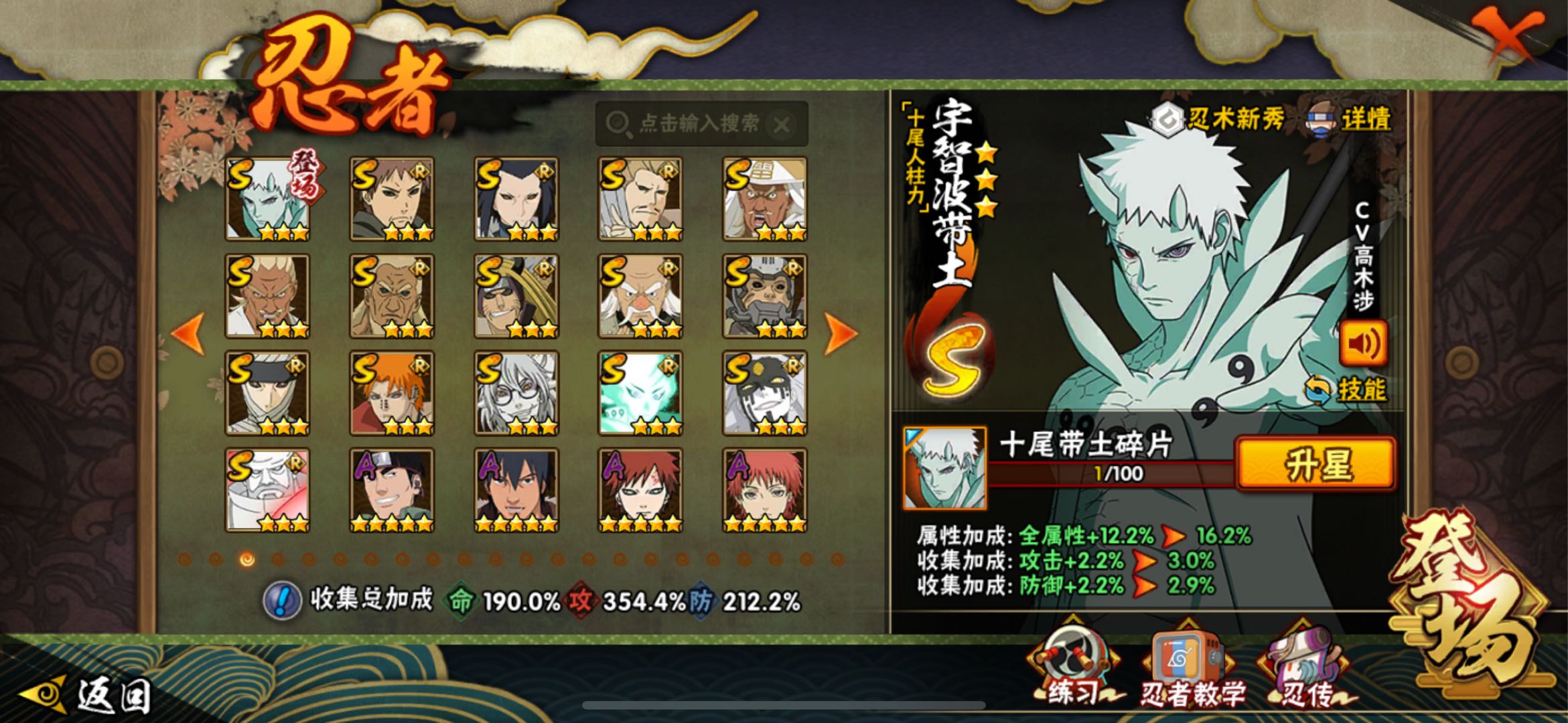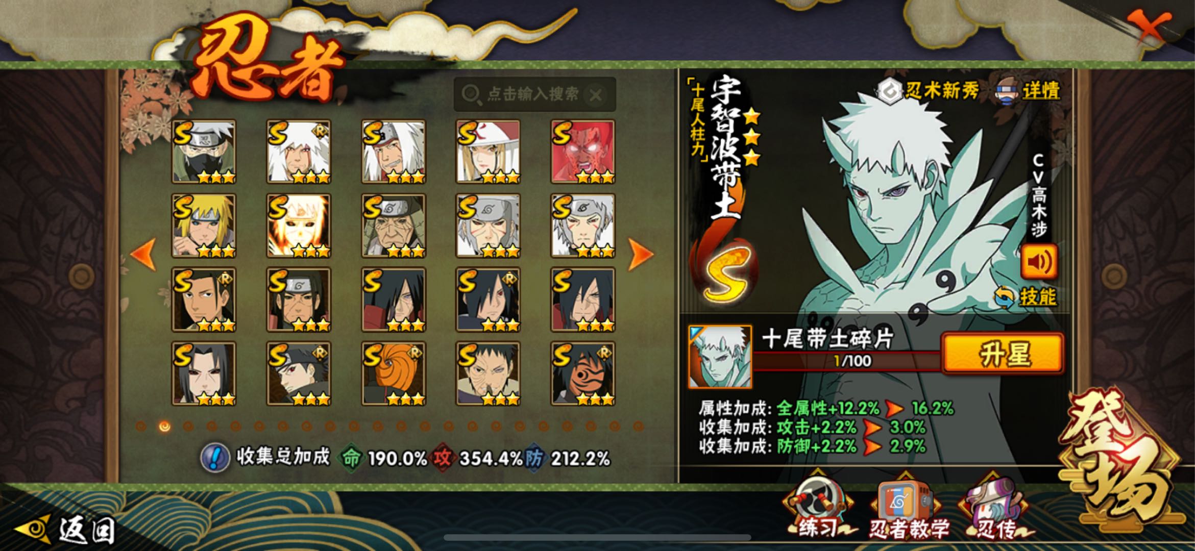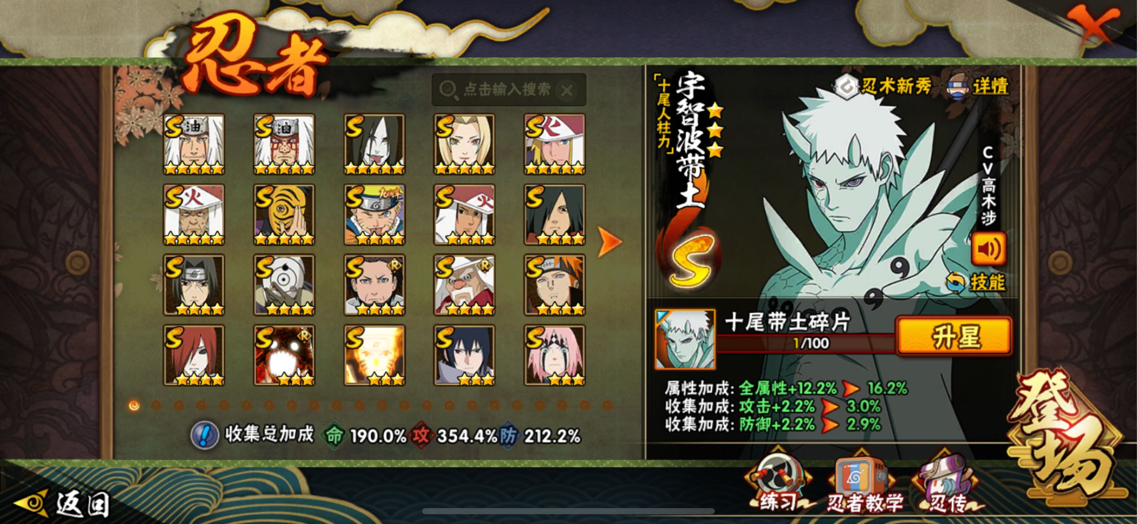 神驹阿斯玛/56S 91A 406忍者 十尾带土/战力3727万/熊猫/万蛇/螃蟹