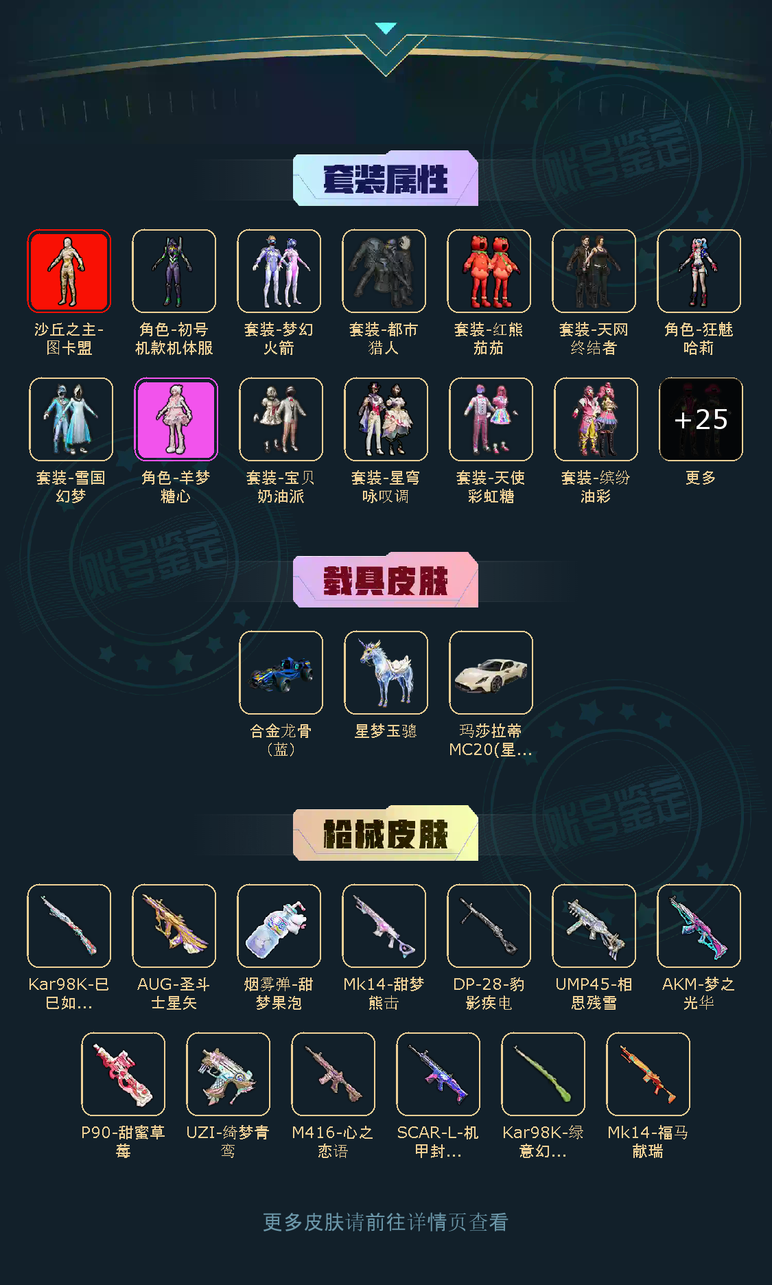 【稀有资产】沙丘之主-图卡盟[3级]/角色-初号机款机体服/套装-雪国幻梦/角色-羊梦糖心/套装-缤纷油彩/AUG-圣斗士星矢/M416-心之恋语/AKM-梦之光华/烟雾弹-甜梦果泡/角色-明日香款战斗服/角色-真嗣款战斗服/套装-都市猎人/套装-天网终结者/套装-胖达圆圆/套装-浪漫天命/套装-龟仙人/套装-迅捷狂鲨/套装-糯粉咩咩/套装-兔兔白日梦/套装-红熊茄茄/套装-墨青刃影/套装-狂沙舞者/角色-粉雾星云/角色-兔兔小魔女/角色-都市丽猫/角色-乐音/角色-银尘
