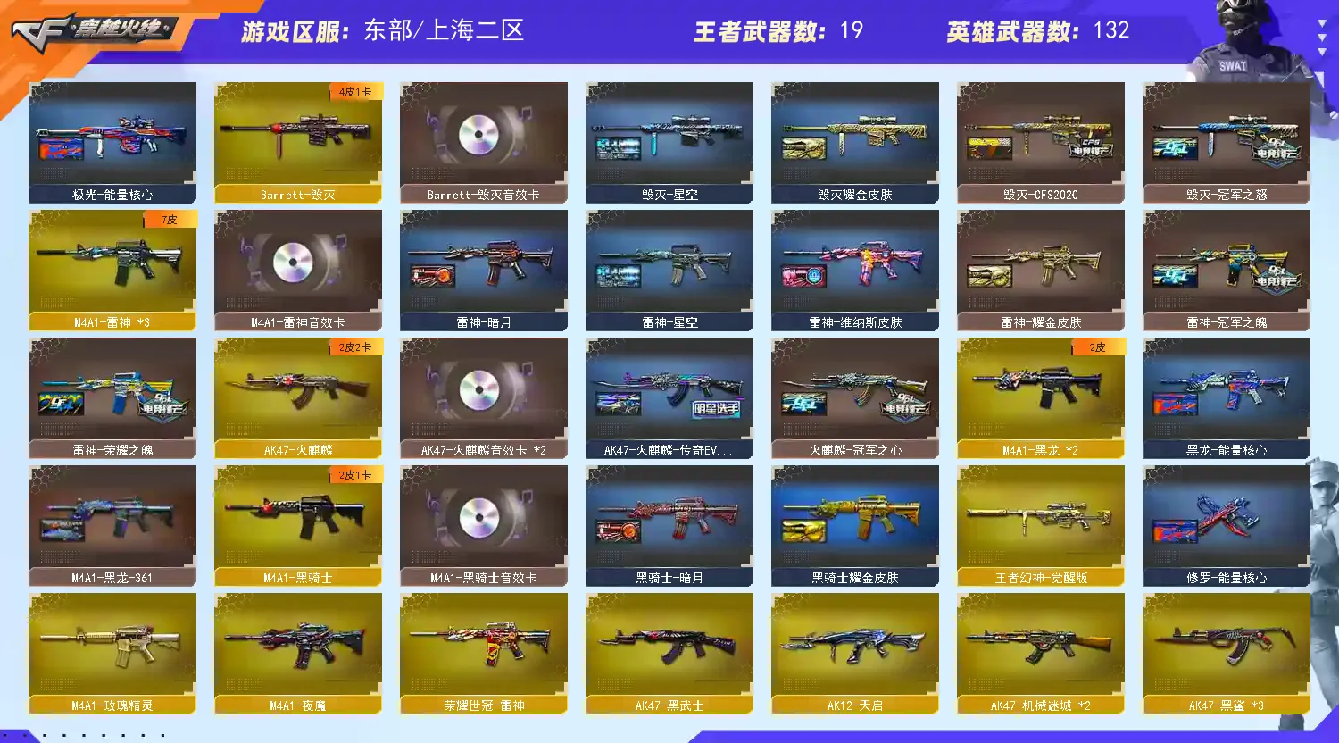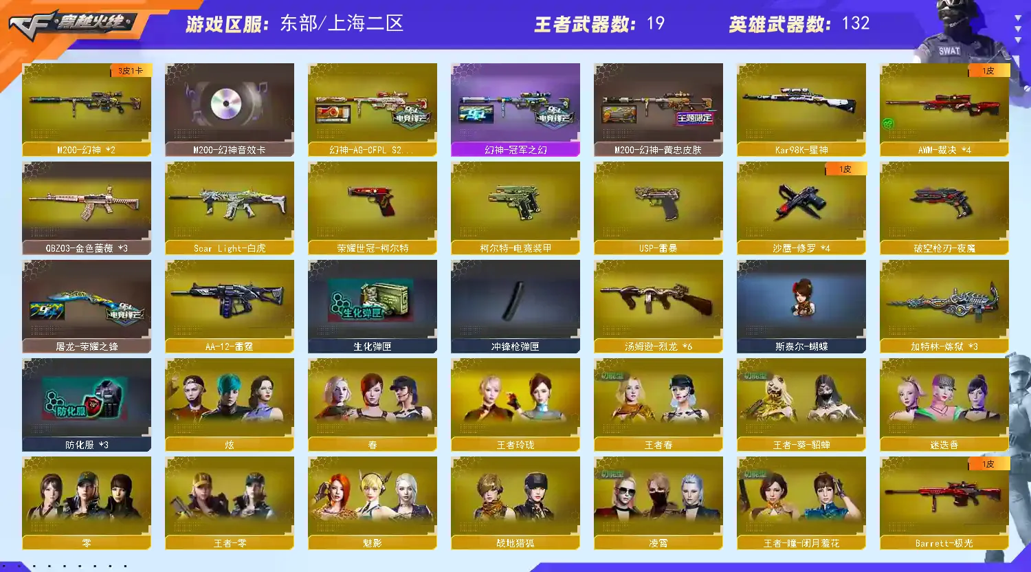 【亮点解析 幻神3皮带卡 生化高配 】【m200幻神+音效卡+冠军之幻+黄忠+ag24冠军+usp雷暴】【98k星神】【王者幻神】【6烈龙 炼狱*2 斯太尔蝴蝶 】【scar白虎】【qbz金色蔷薇】【hk417朱雀】【火麒麟+卡+冠军之心】【黑龙】【雷神+卡+荣耀之魄+白鲨冠军+冠军之魄】【黑骑士+卡】【毁灭+卡+ag15冠军+sv16冠军+冠军之怒】【极光】【裁决】 【武器:雷暴 夜魔 王者之心 王者之翼 王者之武 王者之魄 王者炎心 荣耀世冠火麒麟 荣耀世冠雷神 天龙 】 【9手枪:修罗*4 天神 雷暴 夜魔 电竞装甲 荣耀世冠柯尔特 】 【15刀具:屠龙*2 龙啸*3 擎天*2 麒麟刺 斩神刀雷暴 王者之锋 王者之心 幻灵之峰 荣耀世冠龙啸 】 【14雷套:雷暴雷*7 夜魔雷*7】 【小人枪:火麒麟绝迹 火麒麟灵狐 cop白鲨】 【音效卡:火麒麟音效卡 雷神音效卡 黑骑士音效卡 幻神音效卡 毁灭音效卡 火麒麟音效卡 】 【四防角色:王者春 王者葵貂蝉 职业经理 】
