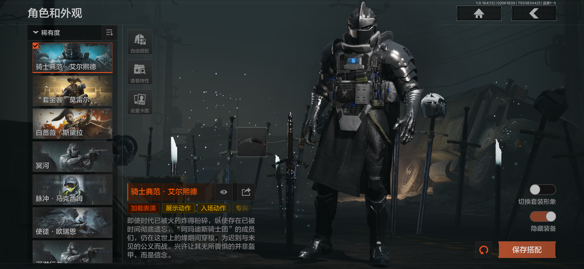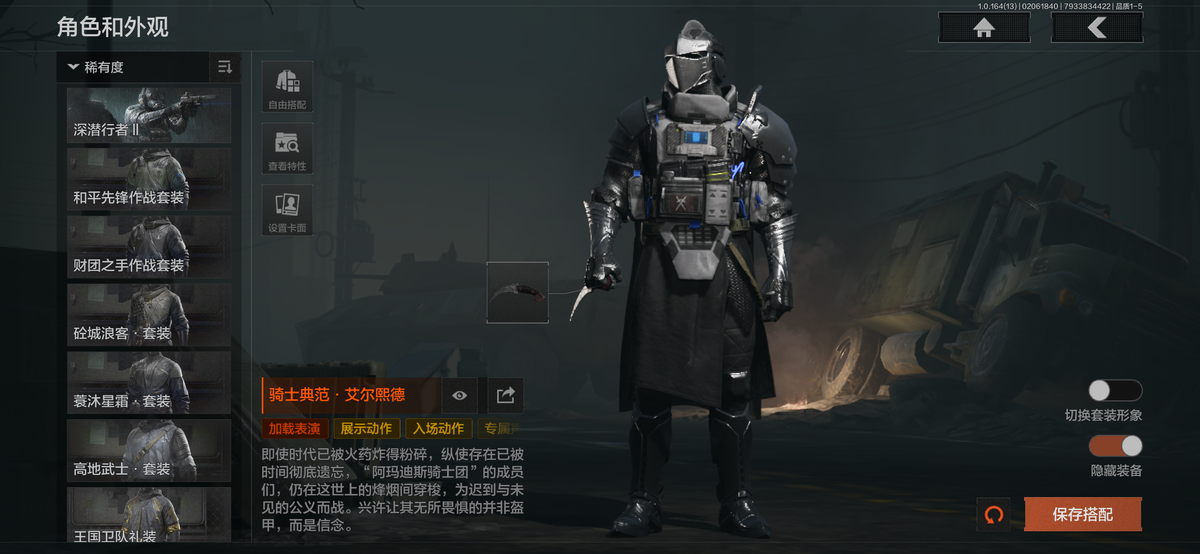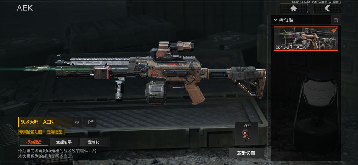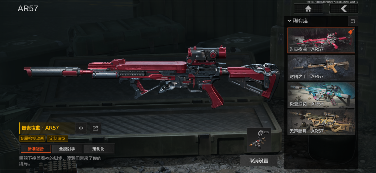 历史最高段位:暗区传说【角色皮肤】:骑士典范艾尔西德,套金客莫雷尔,白蔷薇斯黛拉,冥河,脉冲马克西姆,使徒欧瑞恩,深潜行者Ⅱ,和平先锋作战套装,财团之手作战套装,砼城浪客套装,蓑沐星霜套装,高地武士套装,王国卫队礼装,王国卫队礼装轻装;【近战武器】:百炼恒常,苍穹利爪,下弦月,工兵铲;【突击步枪】:包络战术AKM,火力倾泻AKM,和平先锋AKM,骑士之剑AKM,冻土条纹AKM,猩红抓痕AKM,潜渊蛇鳞M4A1,骤羽尖啸M4A1,幻域莎绫M4A1,地脉深处FAL,竞技MDR,玄墨披挂MDR,调色盘MDR,洞窟遗迹AK102,鱼跃丹青AK102,棱光裂变AK102,玄墨披挂AK102,包络战术AK74N,战术大师AK74N,白狼连队AK74N,告丧夜曲AUG,火绒草AUG,熔岩AUG,深潜F2000,危崖敌影F2000,炎夏浪花AR57,告丧夜曲AR57,财团之手AR57,无声暗月AR57,动感舞步ACE31,地脉深处ACE31,战术大师ACE31,深粉玫瑰ACE31,棱光裂变ACE31,骑士之剑ACE31,竹绿电晶ACE31,战术大师AEK,粉绒臻选AN94,起火点AN94,近卫标记Groza,虎纹Groza,熔岩Groza,骑士之剑Groza,宝石籽料FAMAS,虎纹FAMAS,武侍FAMAS,幻象FAMAS,骑士之剑SCAR,绿海猎手SCAR,青瓷涂层SCAR,巡林客T951,宝石籽料纹T951,绿松石数码T951,森林迷彩T951,冻土条纹T951,骑士之剑T03,利齿风暴T03,深潜T03,虎纹T03,竹绿电晶AK12,格勒涂装AK12,沙海AK12,迅影毒锋AK12,沙海MCX,鱼跃丹青MCX,旧王圣谕QBZ191,浮鳞影青QBZ192,绿海猎手AR15,宝石籽料AR15;【冲锋枪】:猩红抓痕MP5,无声暗月MP5,深粉玫瑰MP5,火力倾泻MP5,利齿风暴MPX,宝石籽料MPX,危崖敌影MPX,青瓷涂层MPX,起火点MPX,冻土条纹P90,绿海猎手P90,冰湖迷彩P90,宝石籽料P90,沙海UZI,洞窟遗迹UMP45,大理石MP40,玄墨披挂MAC10,殷红渐变MAC10,多边棱彩MAC10,利齿风暴T79,绿蟒Vector45,湖冰倒影Vector45,多边棱彩Vector45,洞窟遗迹Vector9,竞技Vector9,洞窟遗迹Suomi,滑雪季Suomi,战术大师Suomi,绿海猎手CPW,沙海MP5K,青瓷涂层MP5K;【射手步枪】:战术大师SVDS,雪原凌锋SVDS,熔岩SVDS,玄墨披挂SVDS,骑士之剑VSS,猩红羽翼VSS,典礼武备MK14,旗帜脉冲M110,绿海猎手M110,大理石M110,,绿松石数码QBU191,鱼跃丹青QBU191,大理石QBU191;【栓动步枪】:包络战术莫辛,竹绿电晶莫辛,无声暗月AX50,冰湖迷彩AX50,骑士之剑AX50,额外污染AR30,熔岩AR30,战术大师SJ16,骑士之剑SJ16,大理石SJ16,深粉玫瑰SJ16,滑雪季M24,护命金翎M24,猩红抓痕M24;【轻机枪】:近卫荣耀RPK16,秘域鎏金RPK16,猩红抓痕M249,典礼武备M249,多边棱彩M249,虎纹M249;【霰弹枪】:绿海猎手M870,多边棱彩M870,竹绿电晶MP133,玄墨披挂MP133,宝石籽料S12K,冻土条纹S12K,沙海S12K,冰湖迷彩S12K,包络战术USAS12,沙海USAS12,旗帜脉冲USAS12,熔星DP12;【卡宾枪】战术大师SKS,粉绒臻选SKS,绿海猎手M14,多边棱彩M96,绿海猎手Mini14,沙海Mini14,滑雪季BM59,虎纹BM59,沙海SVTU;【手枪】:盾蟒G18C,雪山之王G18C,大理石MP9,骑士之剑沙漠之鹰,青瓷涂层T05,冰湖迷彩F57,滑雪季F57,深潜F57,猩红抓痕M300;