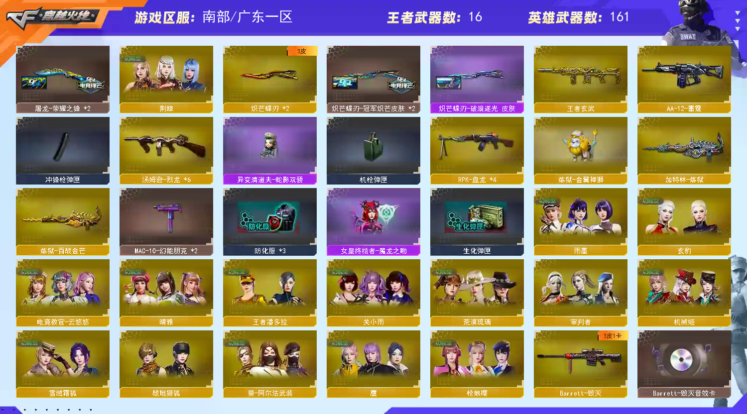 爆破生化双修号♥雷神十周年臻藏版♥双神威炼狱狮子2炼4盘6烈♥传说星骇影煞圣瑜幽瞳♥幻神三件套♥星神三件套♥裁决三件套♥满配手枪(欢迎各位大佬来照顾小子生意,后续有新武器都会抽出来给各位老板享用,谢谢!!!!麻烦科技大哥哥高抬贵手放过小子的号,给你们跪下了!!!!)