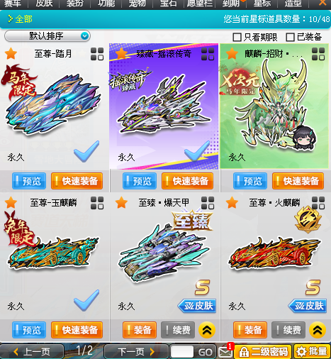 最强s车直线229 臻藏摇滚传奇全29满四级/至尊玉麒麟全29满四/玉麒麟新皮肤玉如意全29满四/至尊神奥丁全29满四/竞速神宠小贵妃强10