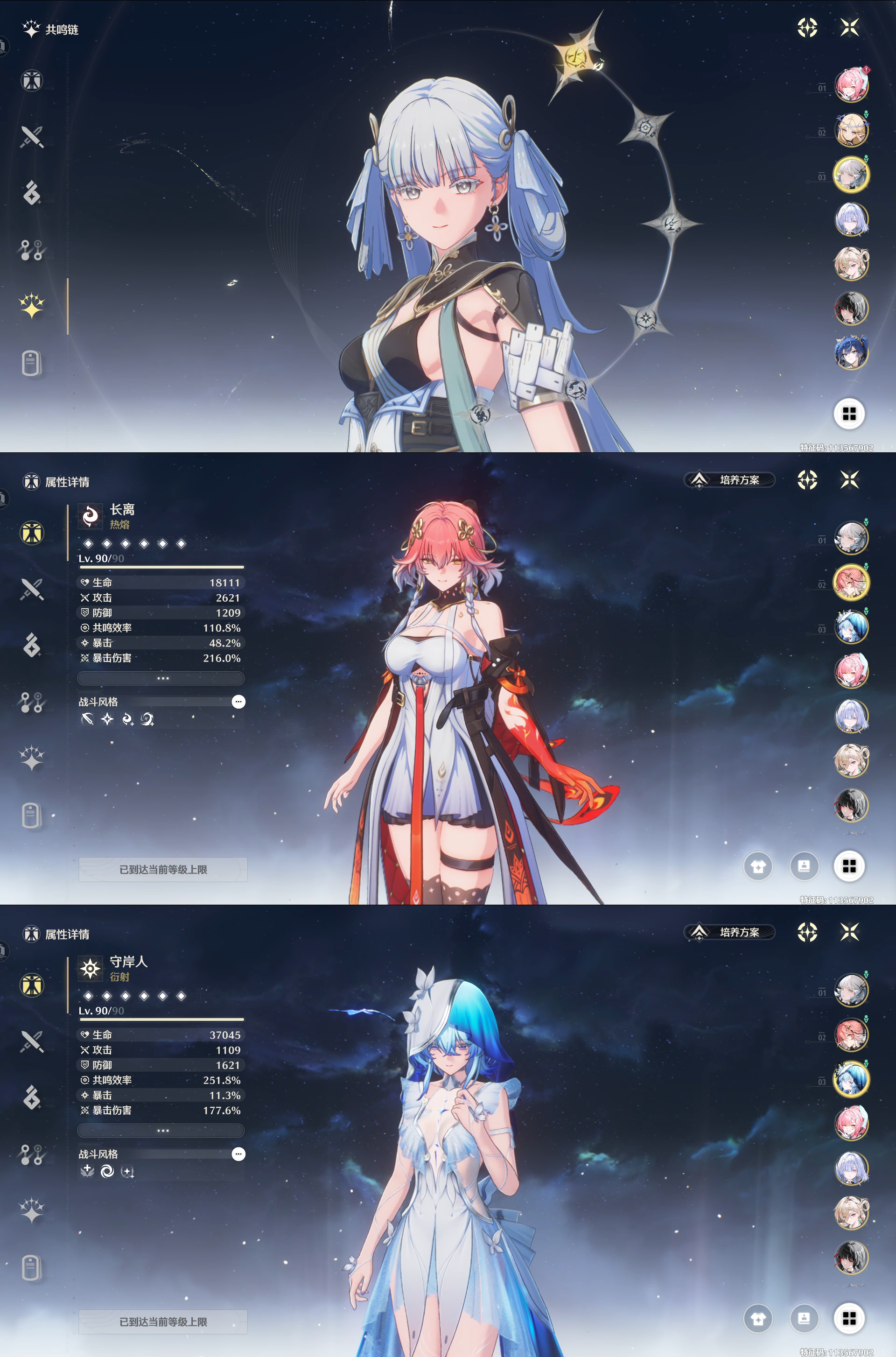 0+1长离、守岸人、柯莱塔、千咲、琳奈、爱弥斯