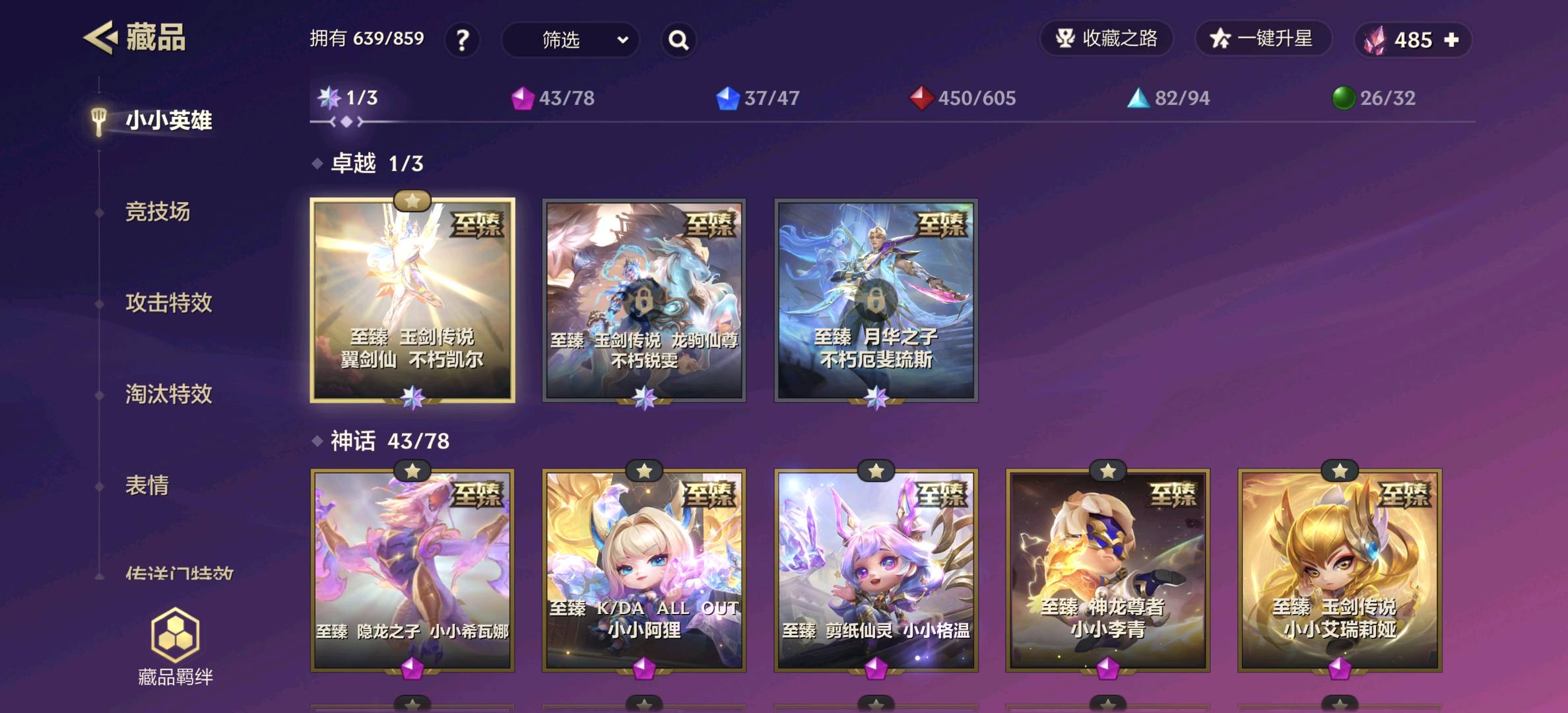 至臻玉剑传说翼剑仙不朽凯尔 至臻龙隐龙之子小小希瓦娜 至臻kda小小阿狸 至臻剪纸仙灵小小格温 至臻神龙尊者李青 至臻玉剑传说小小艾瑞莉娅刀妹 三星大胡子喵