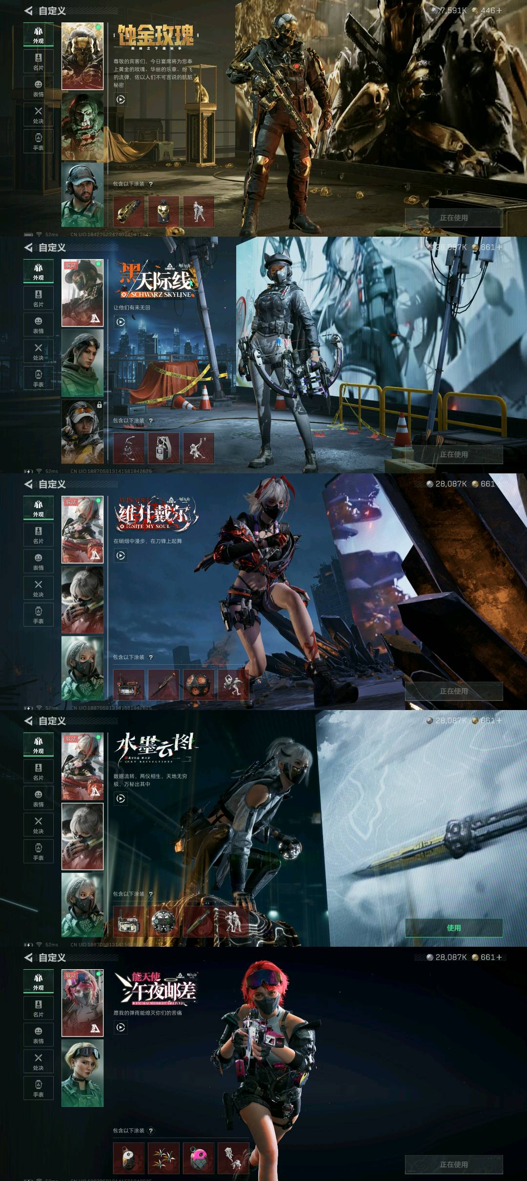 【全平台】 满红6刀/凌霄戍卫/威龙红皮/蚀金玫瑰/水墨/维什戴尔/邮差/方舟联动全/暗星/北极星/信条/满体力