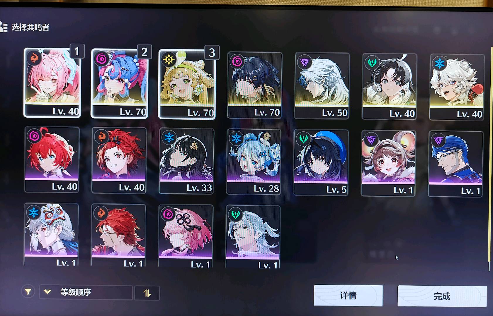 - 核心输出今汐、长离、鉴心均为70级高练度,深渊、活动轻松满星。