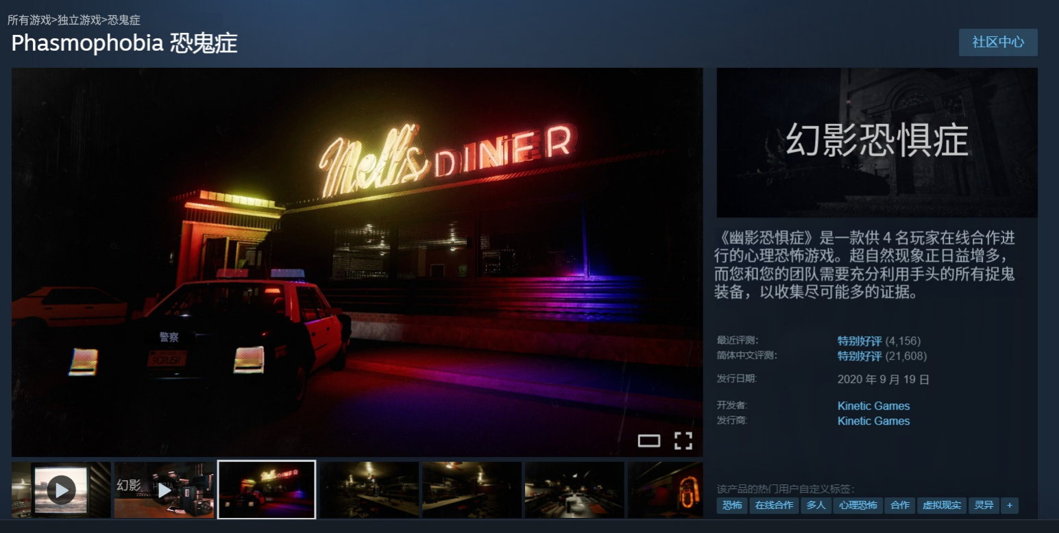 《恐鬼症》是一款供4名玩家参与的在线合作型心理恐怖游戏。你和你的超自然调查团队将深入充满超自然活动的鬼魅之地,努力收集尽可能多的证据。利用你的鬼怪搜寻装备来寻找并记录证据,以便将其出售给一支驱鬼团队。