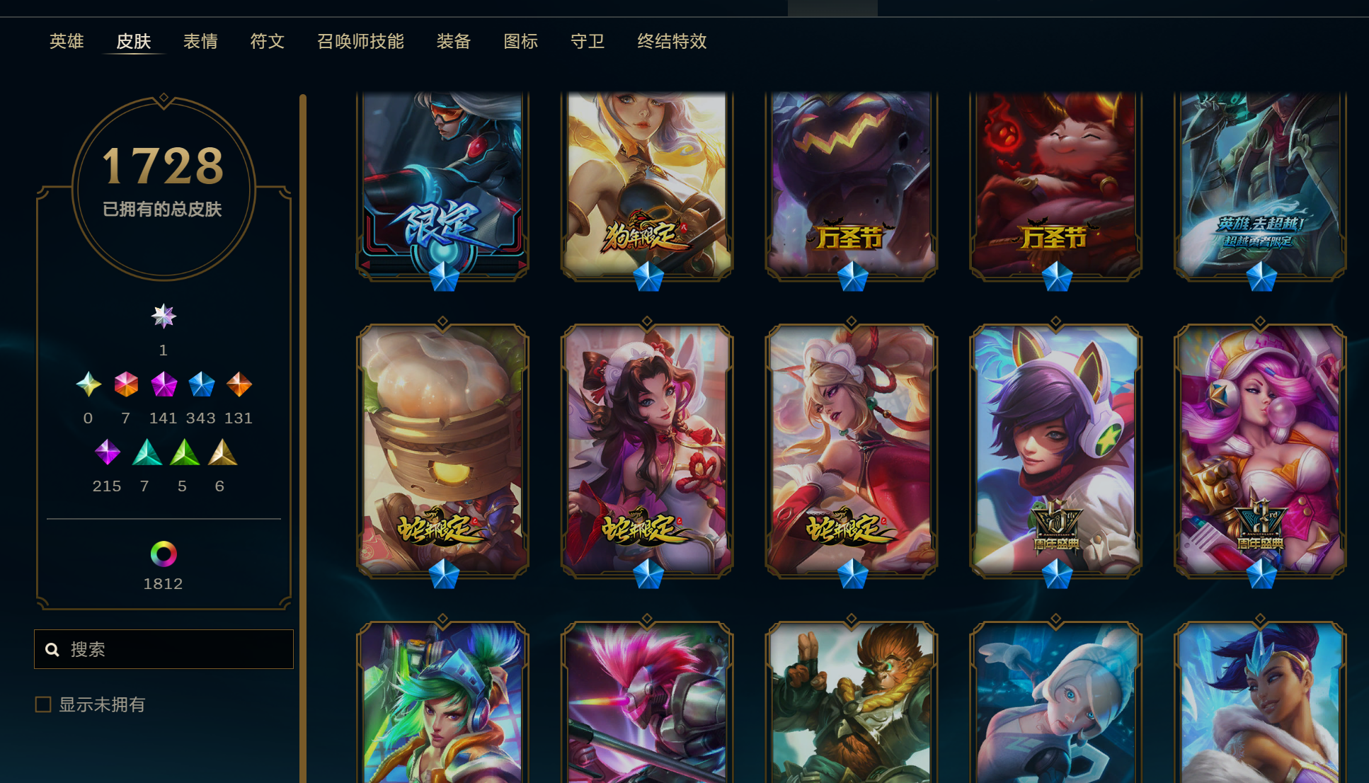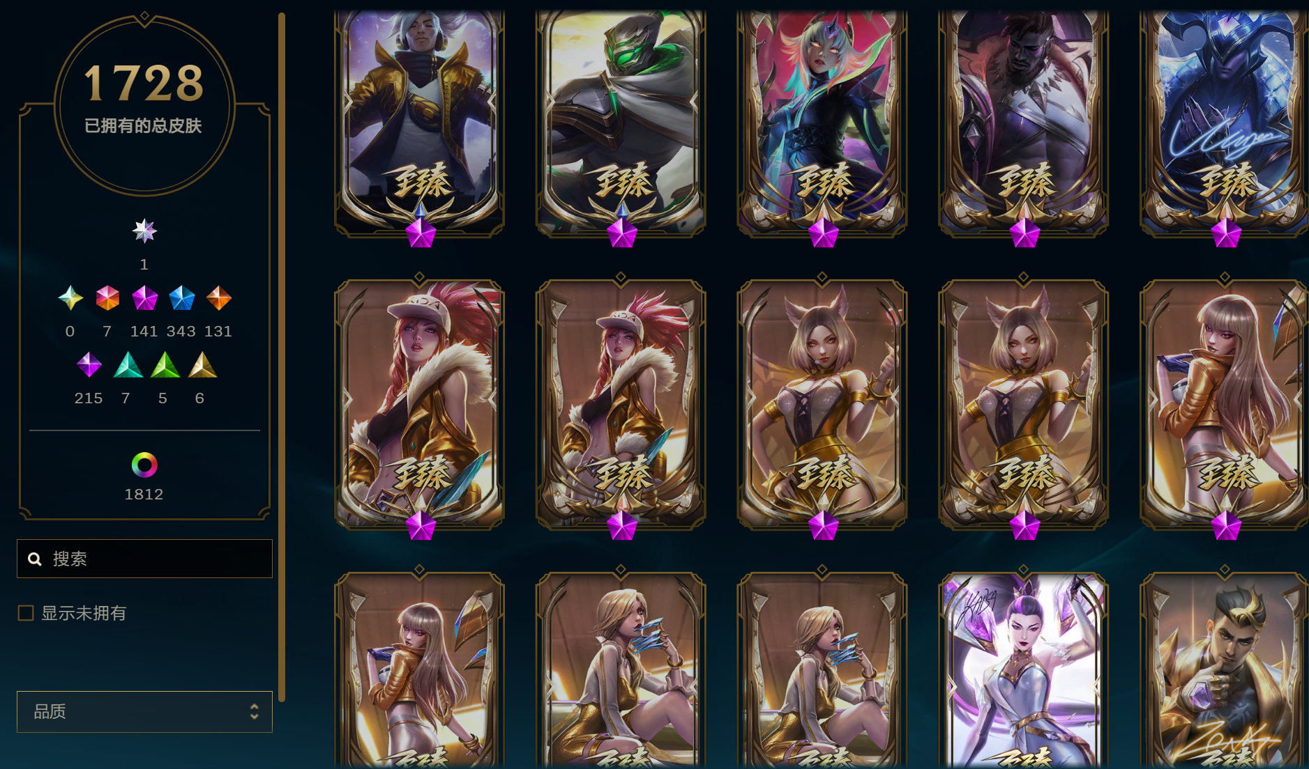号里有三档卡莎,KDA两套包括收藏款全有,年限基本都有。终极皮7个,奥斯曼大帝蛮子,钢铁军团拉克丝,龙虾,海克斯系列皮全有,至臻皮应有尽有。灵魂莲华,源计划,地狱火,泳池派对,星守,奥德赛,执事,花仙子,小蜜蜂,永恒之森,情人节限定,神龙尊者,冰雪节限定,暗星,魔女,黑夜使者,猩红之月,皮肤实在是太多了就不一一列举了。全皮肤1883,就差155就满皮。基本上你们能想玩的都可以在这里找到。可打云顶大乱斗,海克斯乱斗匹配随意畅玩。因遇到送人头恶意挂机等不良租客,导致账号单双灵活禁止排位