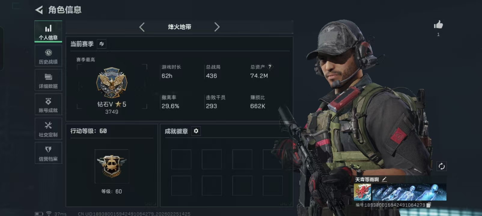 - 烽火地带段位: 钻石
