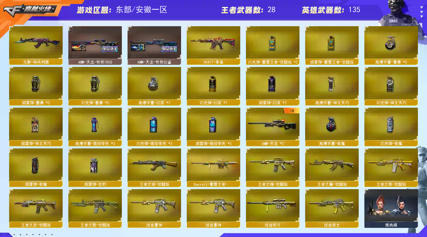 【允许排位】传说女帝金名❤️幻神⑥皮带卡③把雷暴②把冠特冠刃满配副手星神裁决白虎QBZ三件套白鲨猫猫满音效