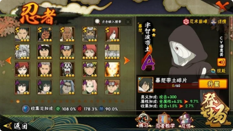 战力:1336W+;S忍26个;A忍44个,通灵兽20个,S忍:九喇嘛鸣人永恒万花筒佐助忍战樱豪杰自来也大蛇丸百豪纲手普通纲手死门凯波风水门秽土水门秽土猿飞千手扉间秽土扉间秽土柱间木叶创立柱间秽土斑秽土解斑秽土鼬神秘面具男白面具忍战带土红夜