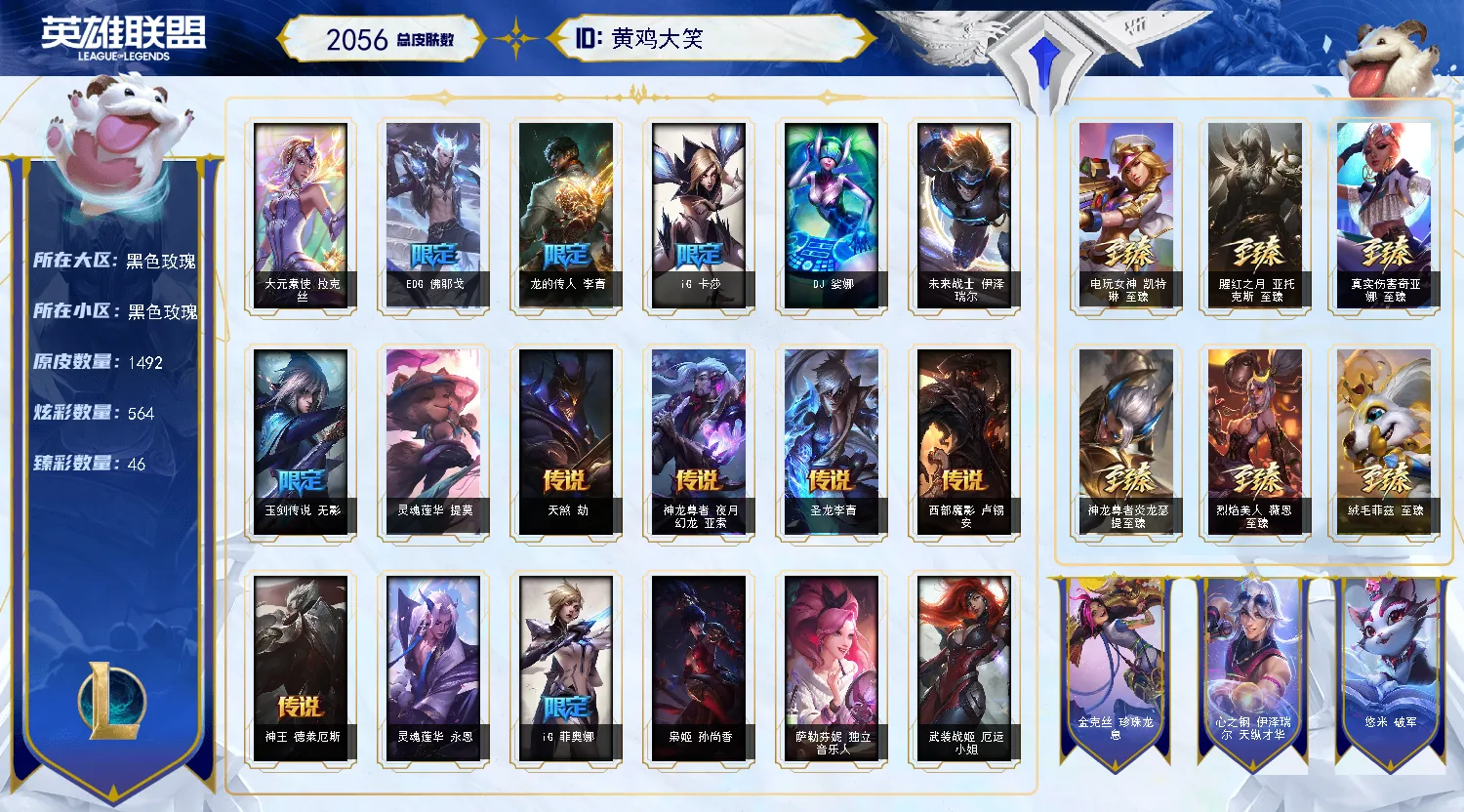 黑色玫瑰2000皮丨1492原皮6色龙瞎丨551炫彩丨307限定丨72神话丨46臻彩