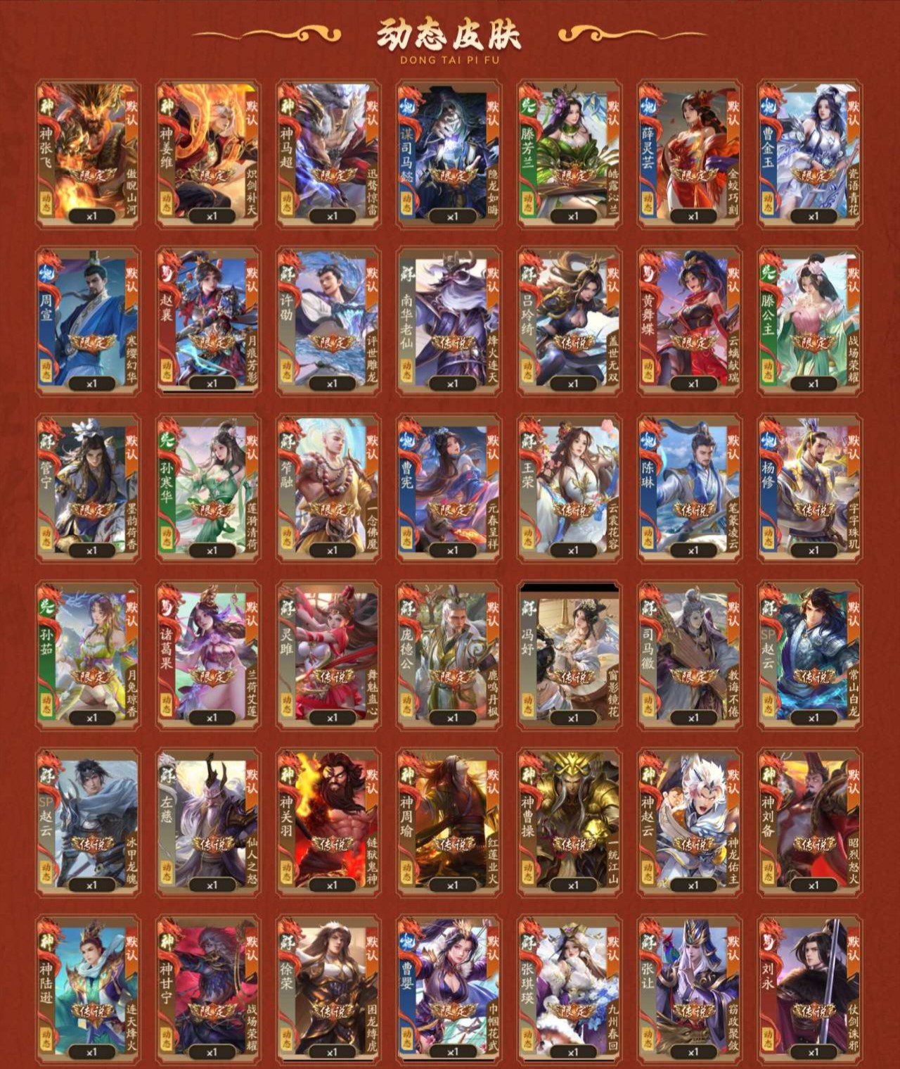 锦绣动皮:谋司马懿/笮融/曹宪/神张飞/神马超/神姜维/藤芳兰/孙寒华/薛灵**/周宣/许劭/黄舞蝶/藤公主/管宁/赵襄/张琪瑛/孙茹/曹金玉