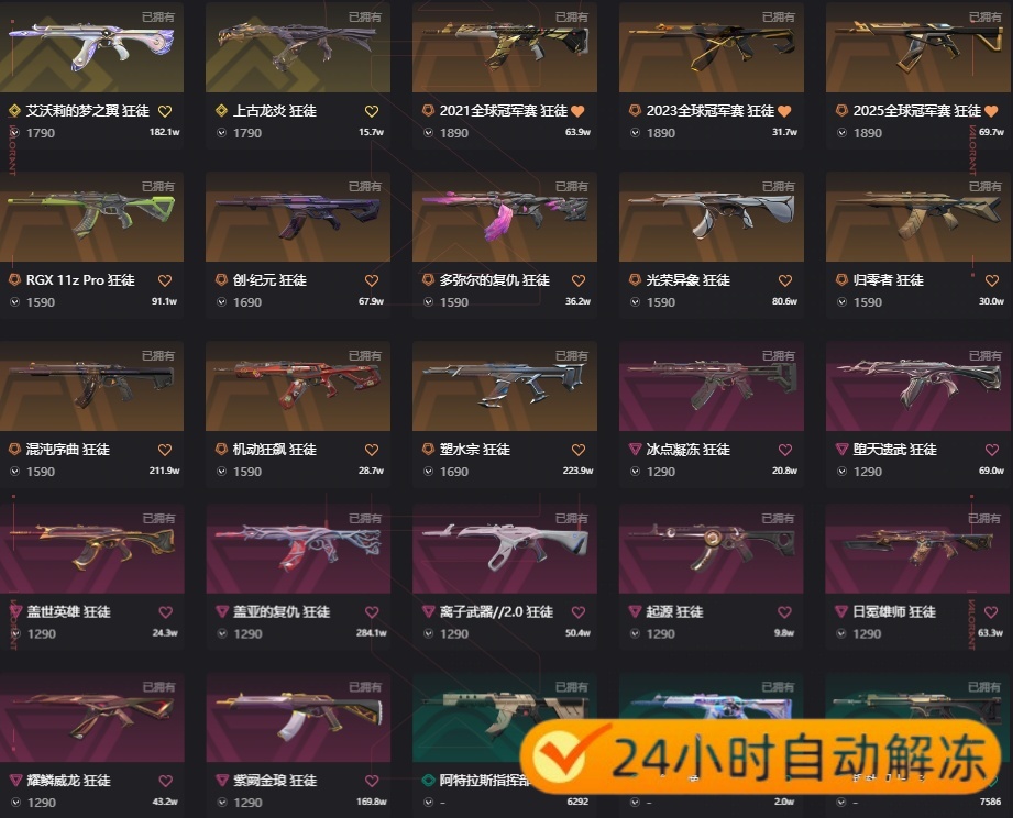 【当前段位:铂金I】24小时自动解冻 限定号离火刃21冠军23冠军24冠军25冠军25篆刀双城之战正义盖亚混沌21w库存
