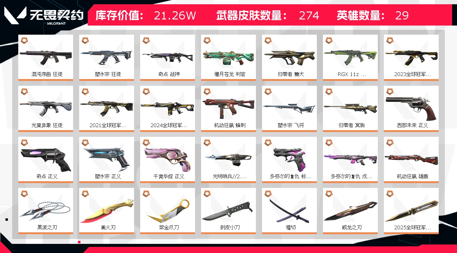 - 武器皮肤数量: 274