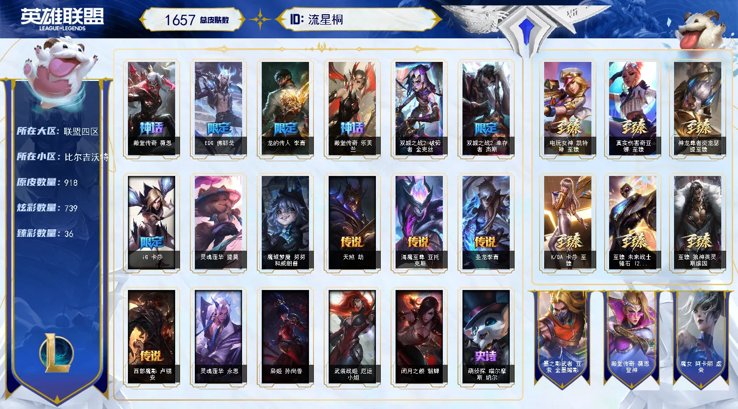 1600皮48神话|全英雄|125限定|圣堂金克丝|龙瞎|王国机神贾克斯|斗魂莎弥拉|斗魂佛耶戈