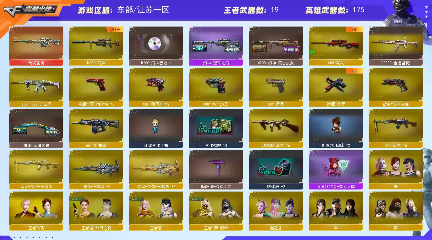 幻神三件套 哔哩哔哩名片】【M200-幻神+音效卡+幻神-冠军之幻+幻神-黄忠】【王者幻神】【王者星神】【传说圣灵】【ScarLight-白虎】【QBZ03-金色蔷薇】【生化 6盘龙 6炼狱 6烈龙 蝴蝶 死亡之眼】【裁决】【Barrett-毁灭+音效卡】【极光】【雷暴套】【堕天神套】【荣耀世冠套】【AK47-火麒麟+音效卡】【黑龙+音效卡】【M4A1-雷神+雷神-荣耀之魄】【黑骑士+音效卡+白马银枪】【王者之心 王者火魄】【无影 死神 黑武士 超新星 龙血 hk417-朱雀】【21手枪 修罗*11 天神 usp雷暴 cop堕天神*2 cop幻灵 王者之魂 荣耀世冠-柯尔特*2 】【29近战 屠龙*7 龙啸*3 擎天*2 麒麟刺 斩神刀雷暴*2 幻灵之锋 王者之啸*2 王者之击*2 王者之刺 】【手雷 雷霆雷 雷暴雷 堕天神 夜魔雷 幻灵雷】【四防 王者春 王者葵貂蝉 】【幻神音效卡 AK47-火麒麟音效卡 Barrett-毁灭音效卡 黑龙音效卡