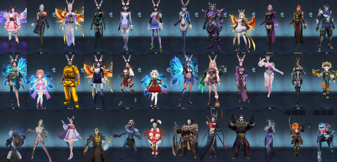 角色炽霞丨寰宇丨幻灵丨黄金比伯丨小乔丨弓腰姬丨伊利亚丨派拉丨月兔精丨童子丨狐妖丨青蛇丨刑天丨洞主丨白骨夫人丨丧钟丨鲨皇丨滑板-极冻丨