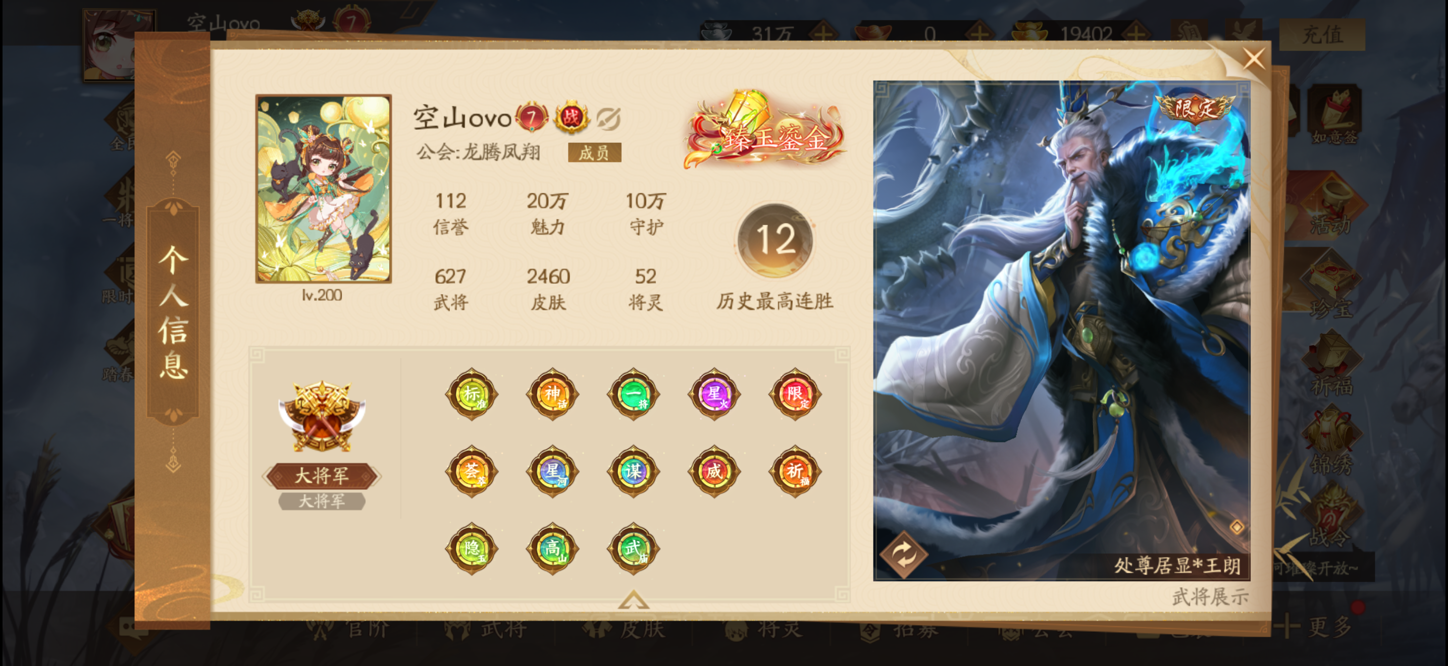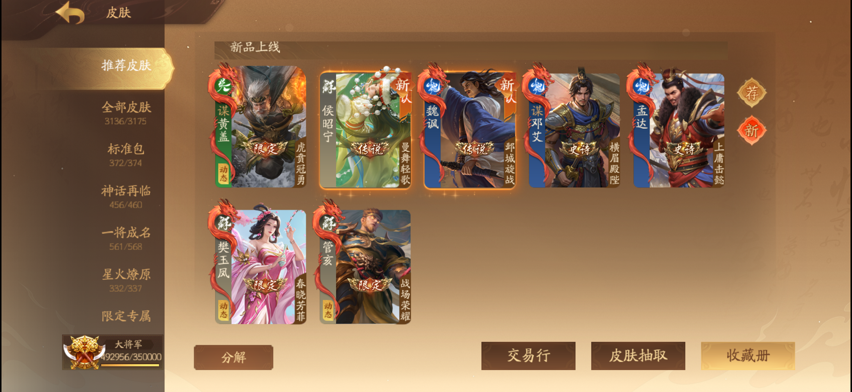 本顶配账号一切武将皮肤立刻更新,不计成本,喜欢请老板们收藏刘辉武陆逊武诸葛将武皇甫嵩武关羽神张飞神马超神庞统神黄忠谋司马懿威灯威吕布威曹丕威张辽谋姜维谋邓艾神赵云将灵威马超谋邓艾谋姜维