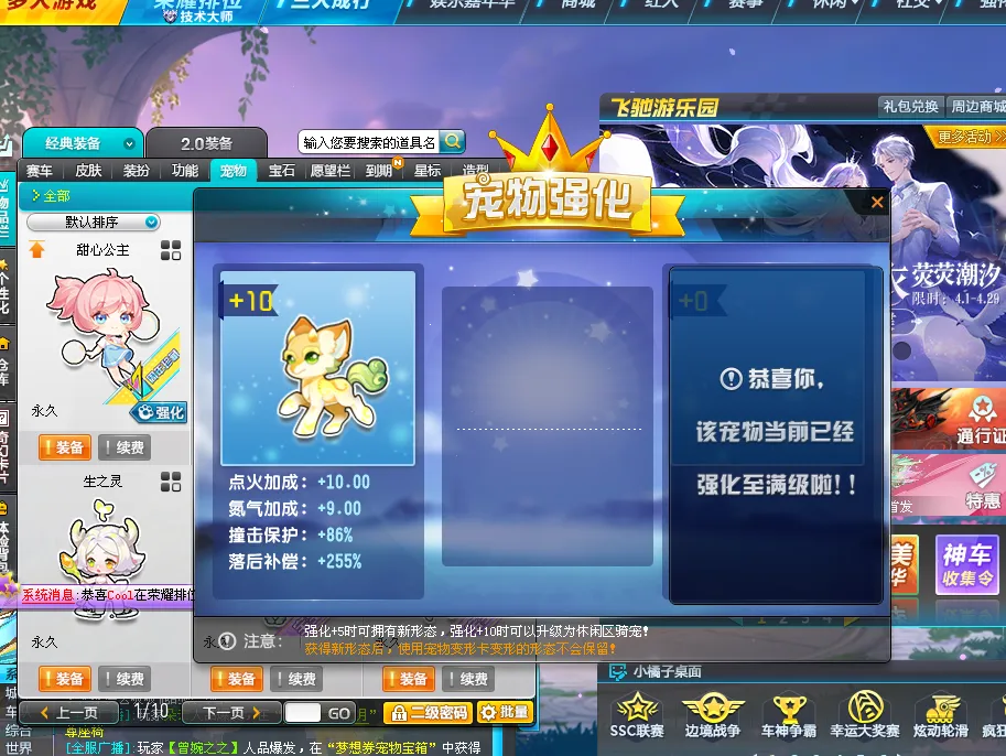 最新4年限227,一堆226车皮,都是满改四级宝石,最强宠物麒麟+10,公主+10,一堆动作悬浮,10来套稀世衣服