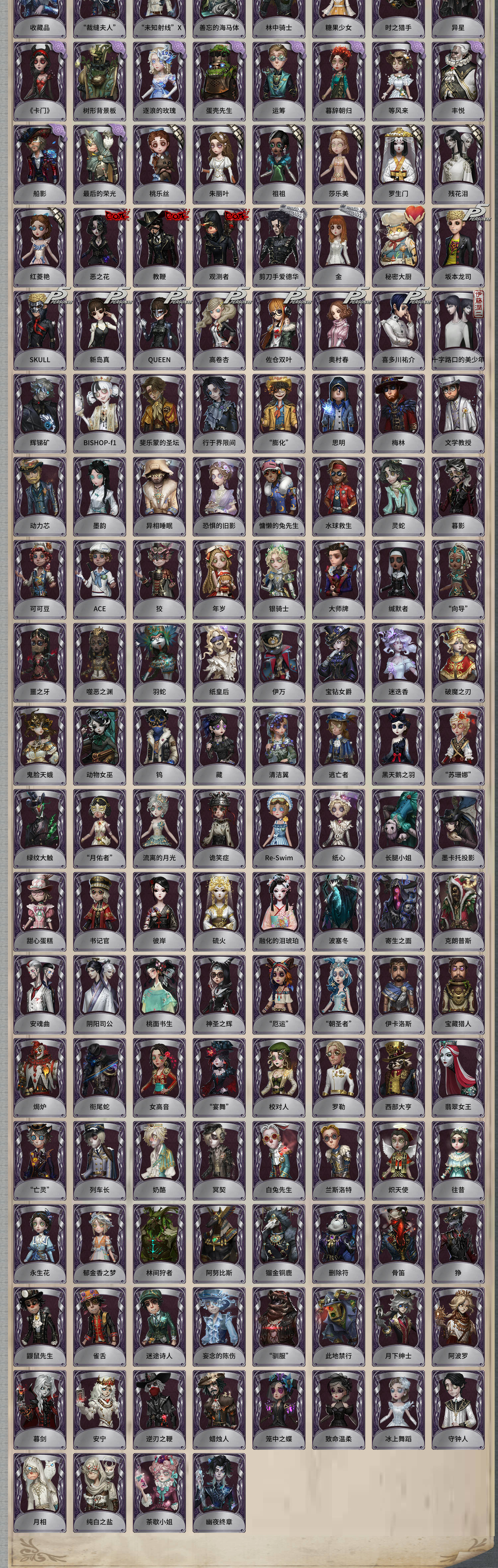 缚愿 冠军舵手 尼德霍格 忘川渡人 女武神 小红帽 不会枯萎的花 "建筑师"