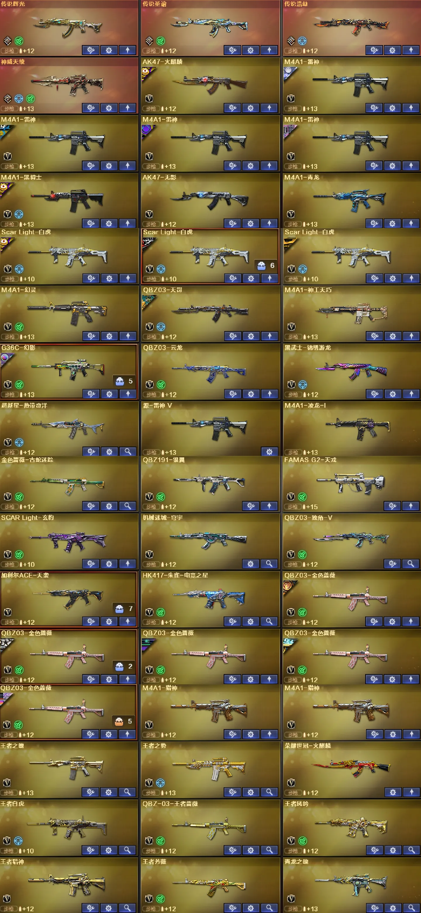 【允许排位】金色ID顶配爆破生化号丨幻神22皮36把副手大满贯丨星神裁决白虎QBZ多皮满音效卡丨国王狮子5蝶刀